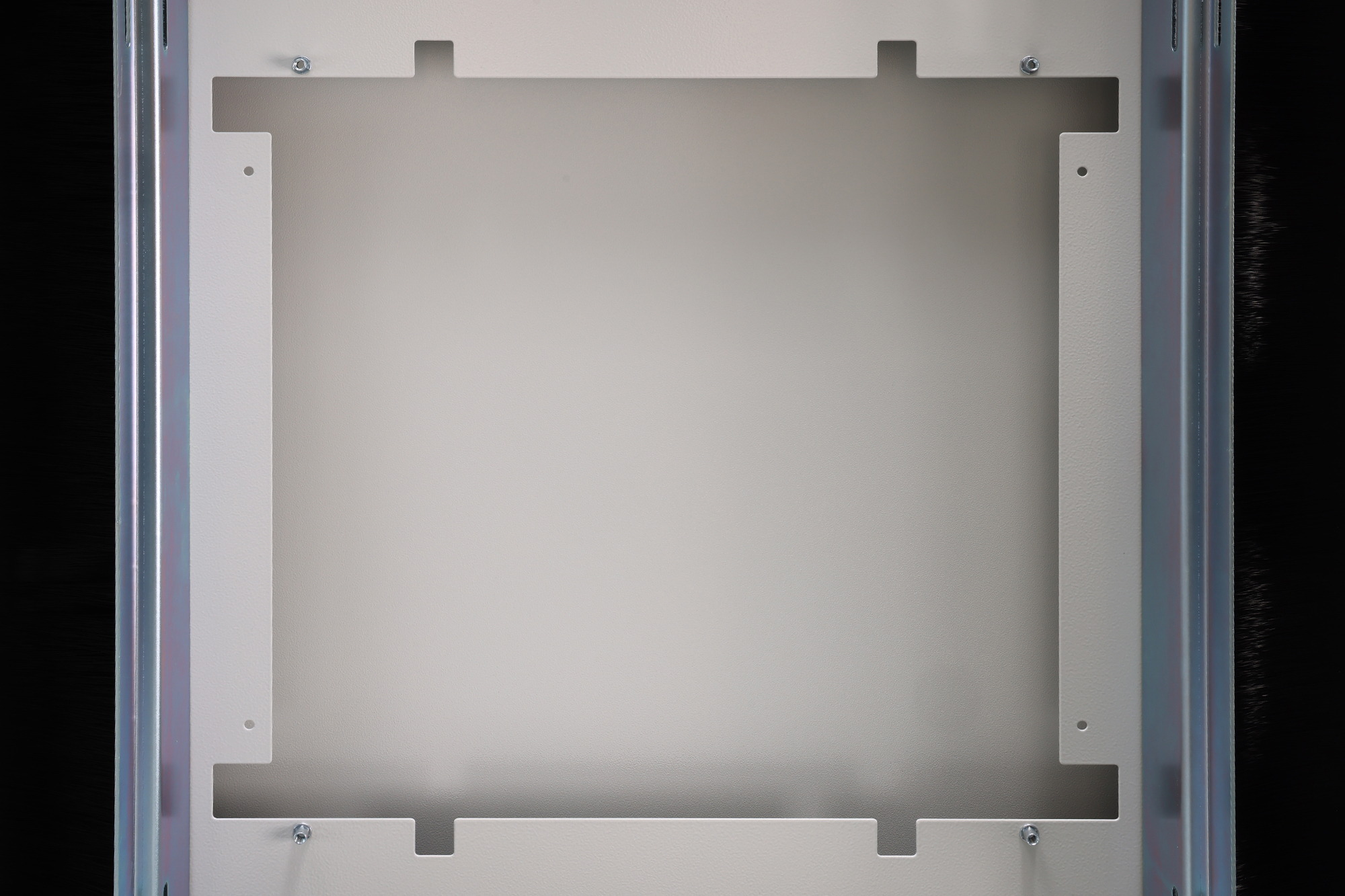 - Flexible Möglichkeiten zur Kabelführung durch großzügige Kabeleinlässe mit Bürsten im Dach, Boden und der Rückseite