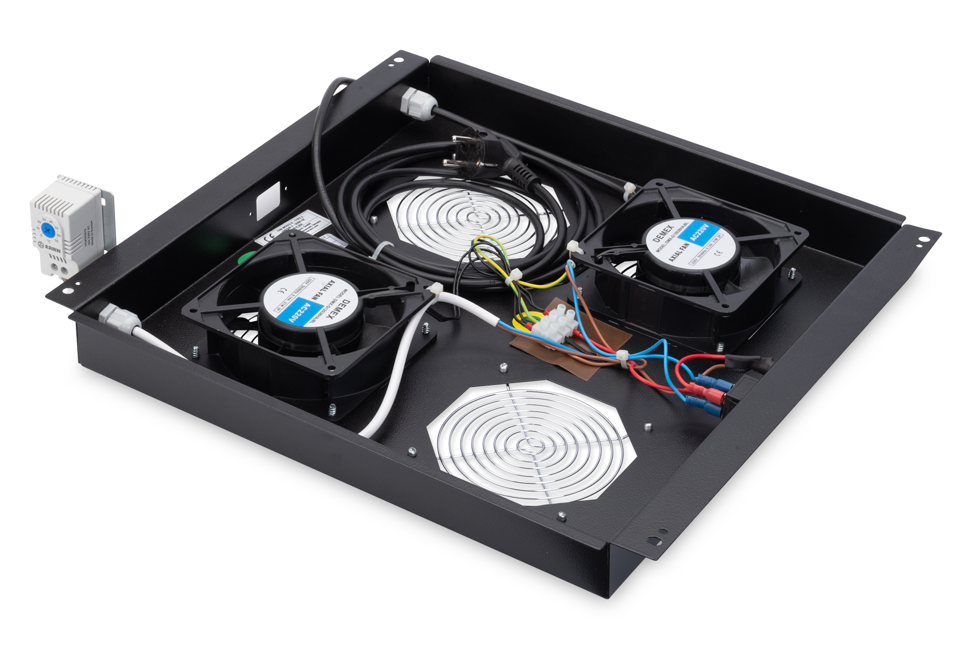 Das DIGITUS® 483 mm (19")-Zubehör ist für die hohen Anforderungen der IT-Infrastruktur entwickelt, es wird nach deutschen Qualitätsstandard hergestellt.- Einfacher Einbau in das Dachmodul des 19"-Schrankes