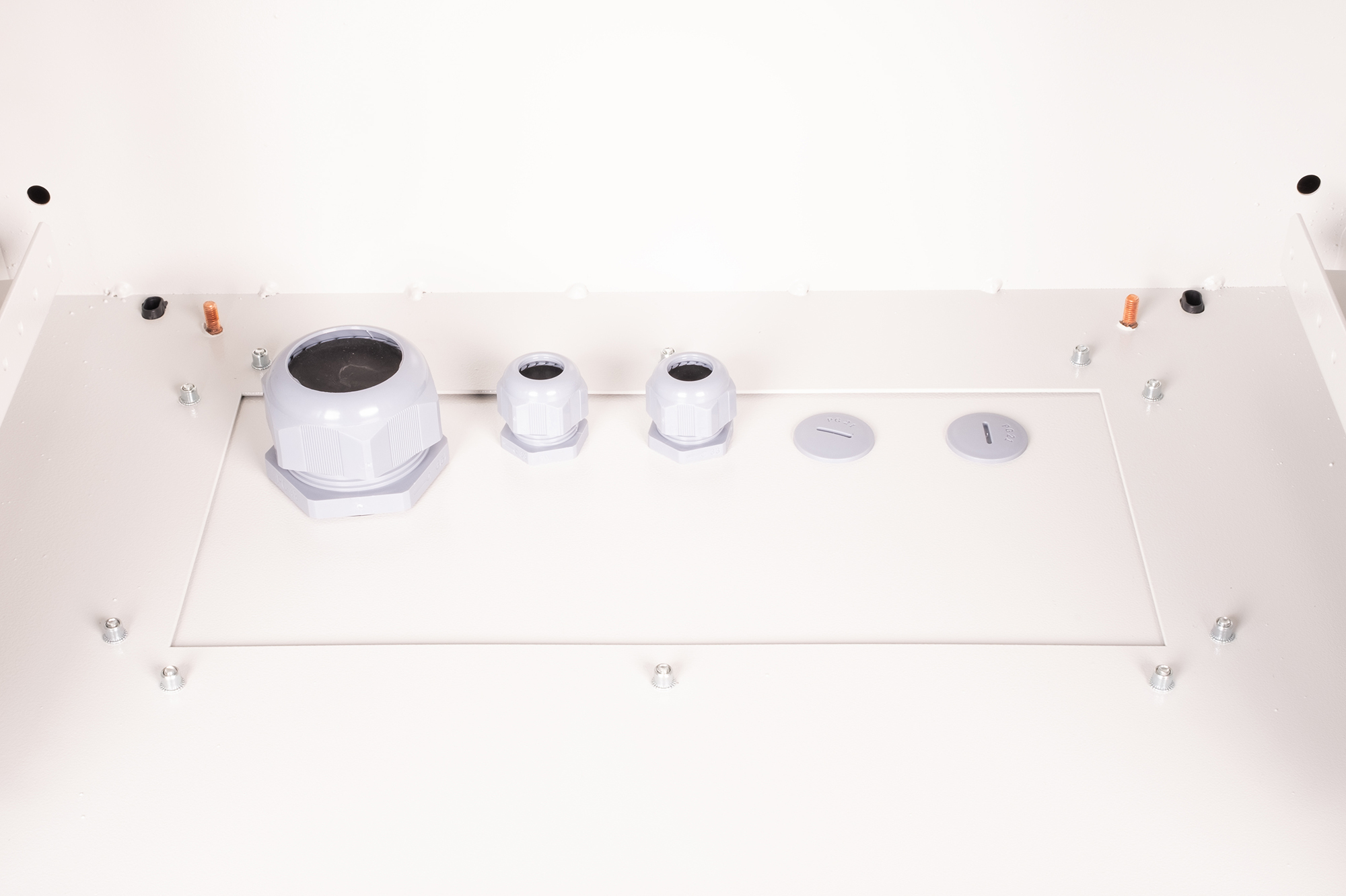 - Fronttür mit Erdung und zwei angeschweißten, stärkenden Balken in U-Form sowie Dichtung