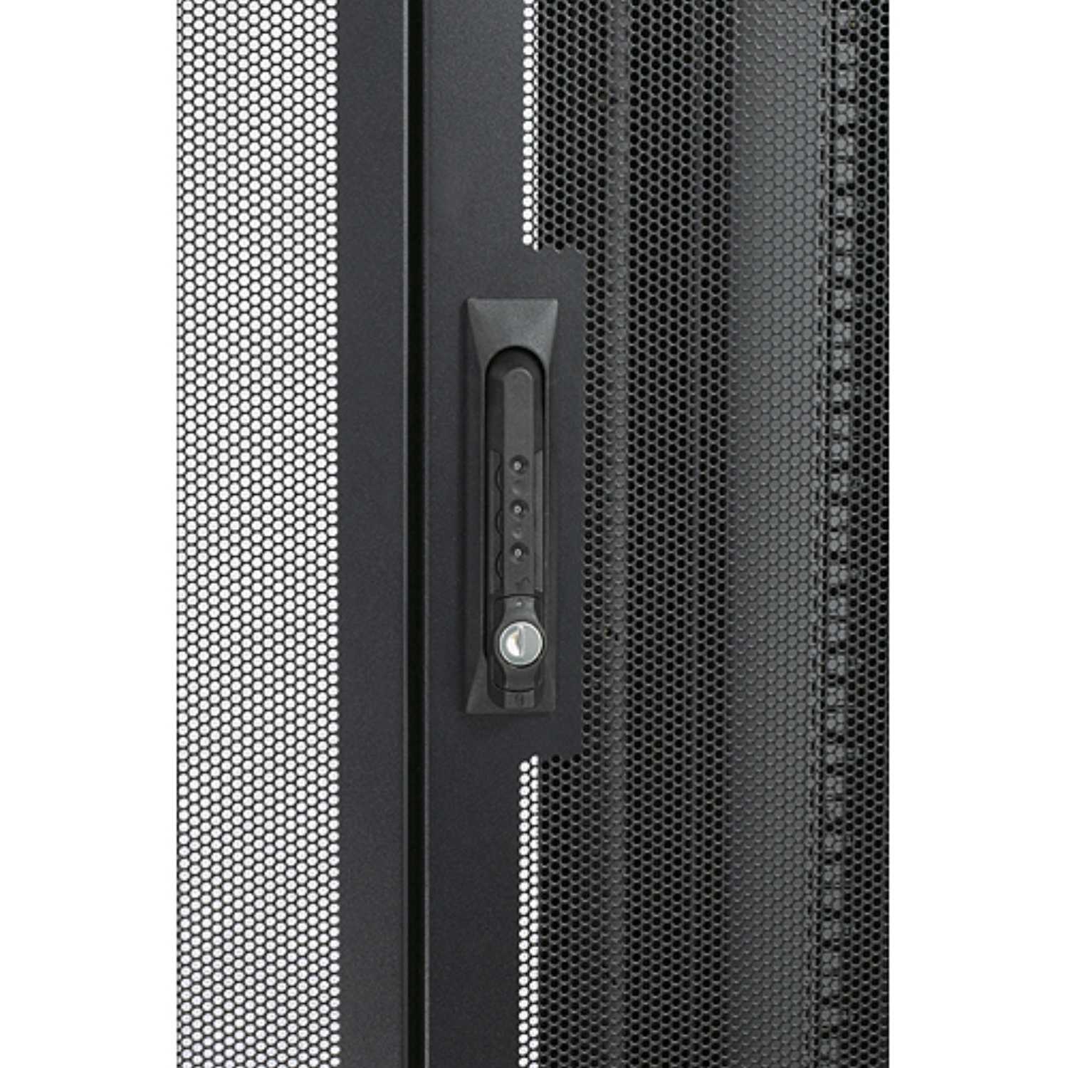 Der Griff mit Kombinationsschloss mit drei Zuhaltungen und Generalschlüsselübersteuerung bietet mehr Sicherheit für ein NetShelter-Standardgehäuse. Ermöglicht die gleiche Montage wie der serienmäßige Schwenkgriff.