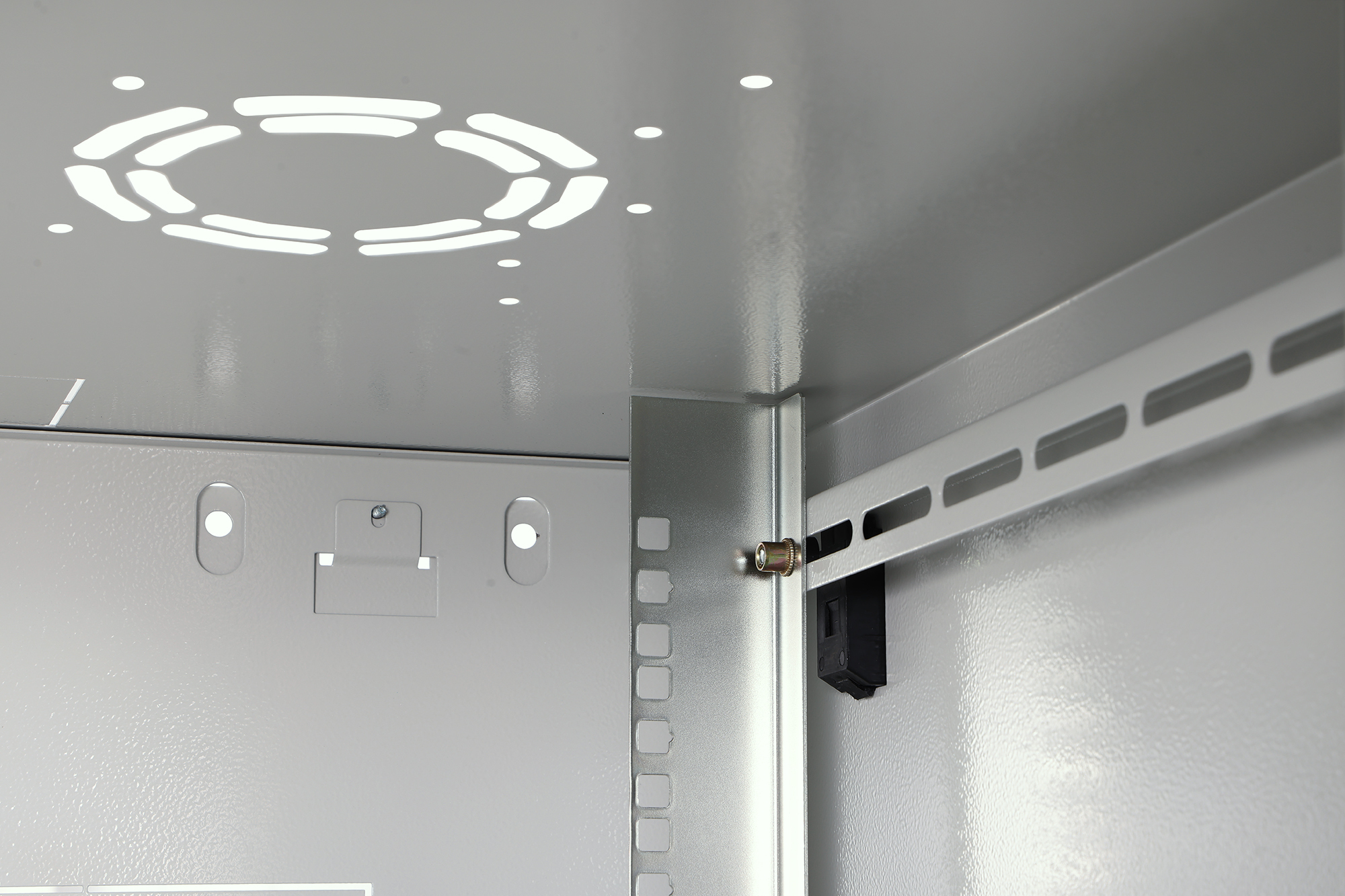 - 483 mm (19)-Profilschienen an der Vorder- und Rückseite innerhalb des Schrankes montiert, galvanisiert