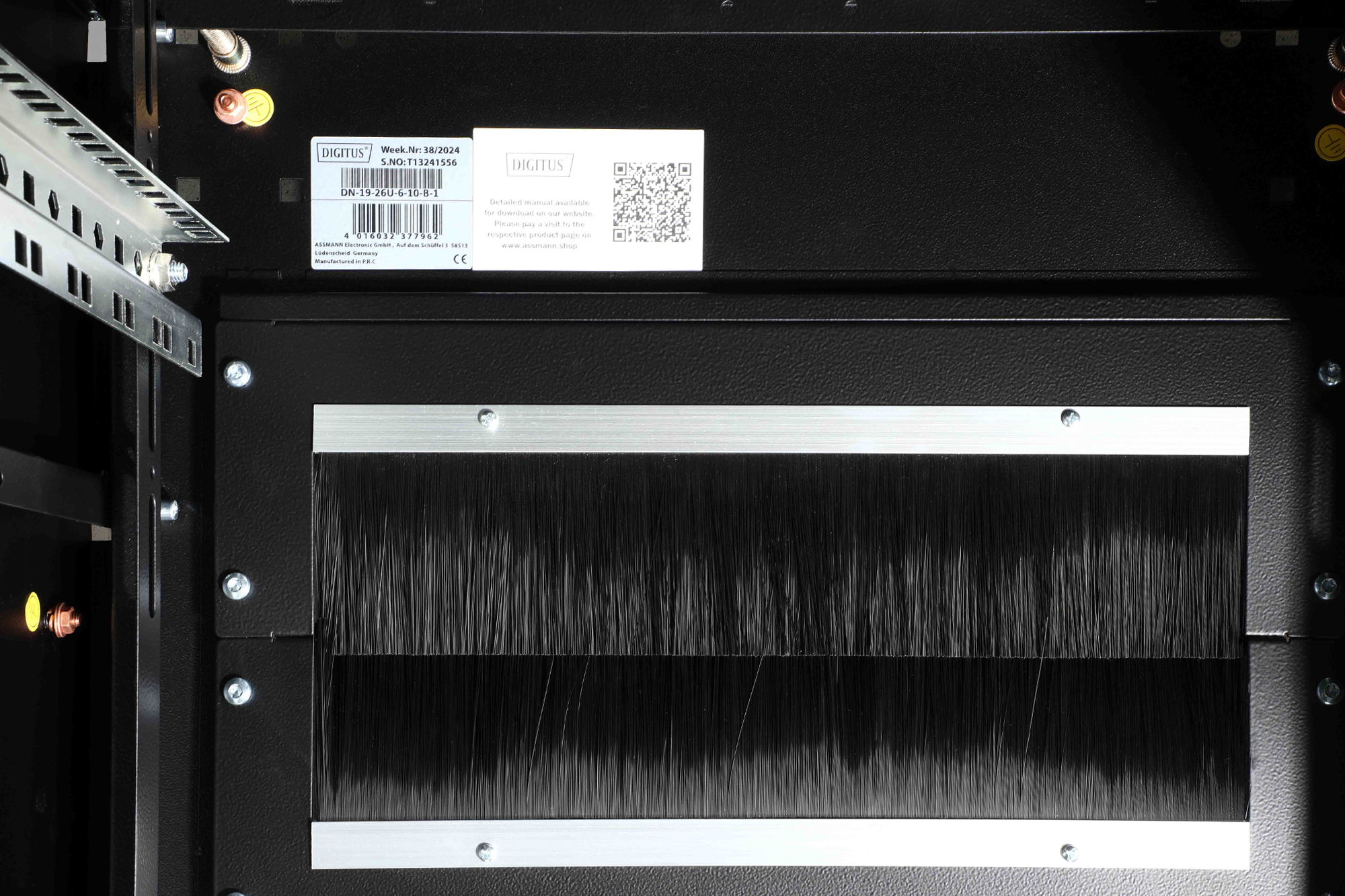 Die Netzwerkschränke der Unique Serie wurden für eine besonders komfortable und flexible Netzwerkverkabelung designt und produziert. Durchdachte Optimierungen bieten marktkonforme Stabilität bei maximaler Flexibilität. Ein modular, durch verschraubte 483 mm (19")-Blindplatten öffenbares Bodenchassis bietet ausreichend Platz für Kabel aller Art. Darüber hinaus befinden sich Kabeleinlässe mit Bürste im hinteren Bereich des Bodenchassis. Rückseitige Bürstenleisten ober- und unterhalb der Rücktür (ab 26HE), ermöglichen den Einsatz bei verschiedensten Anwendungsszenarien. Großzügige vertikale Kabelkanäle mit Kabelführungshilfen und Blende, verbaut in der Frontseite (ab 800 mm Schrankbreite), runden die vielfältigen Eigenschaften des Netzwerkschranks einwandfrei ab. Zwei Paar verkröpfte und galvanisch verzinkte, mit gegenläufig ablesbaren Höheneinheiten beschriftete 483 mm (19")-Profilschienen sind im Inneren verbaut. Sie lassen sich stufenlos verstellen und sind mit zusätzlichen Tiefenstreben im Schrank verbunden. Jeder Schrank ist eine robuste Stahlkonstruktion aus bis zu 1,5 mm starkem Stahlblech. Die Farbgebung erfolgt in Form von elektrostatischer Pulverbeschichtung in den Standardfarben Grau (RAL 7035) und Schwarz (RAL 9005). Modular abschließ- und abnehmbare Seitenwände sowie Türen verbessern die Zugänglichkeit. Ein Türanschlagswechsel kann vorgenommen werden. Des Weiteren sind die Schränke auf Grund der zerlegbaren Konstruktion bei Bedarf komplett demontierbar. Unter Berücksichtigung von Faktoren wie beispielsweise den Gewichten sowie der Wärmeentwicklung von Einbaukomponenten lassen sich, je nach Anwendungsfall, alle DIGITUS® Unique Netzwerkschränke auch als Serverschränke nutzen. Der Einbau von perforierten Stahlblechtüren sorgt bei solchen Varianten für eine verbesserte passive Kühlung der verbauten Komponenten. Ein von DIGITUS® als Serverschrank definiertes Modell wird beispielsweise in der Standardkonfiguration der Unique Server-N Serie zusätzlich um rückseitige PDU-Halterungen ergänzt.