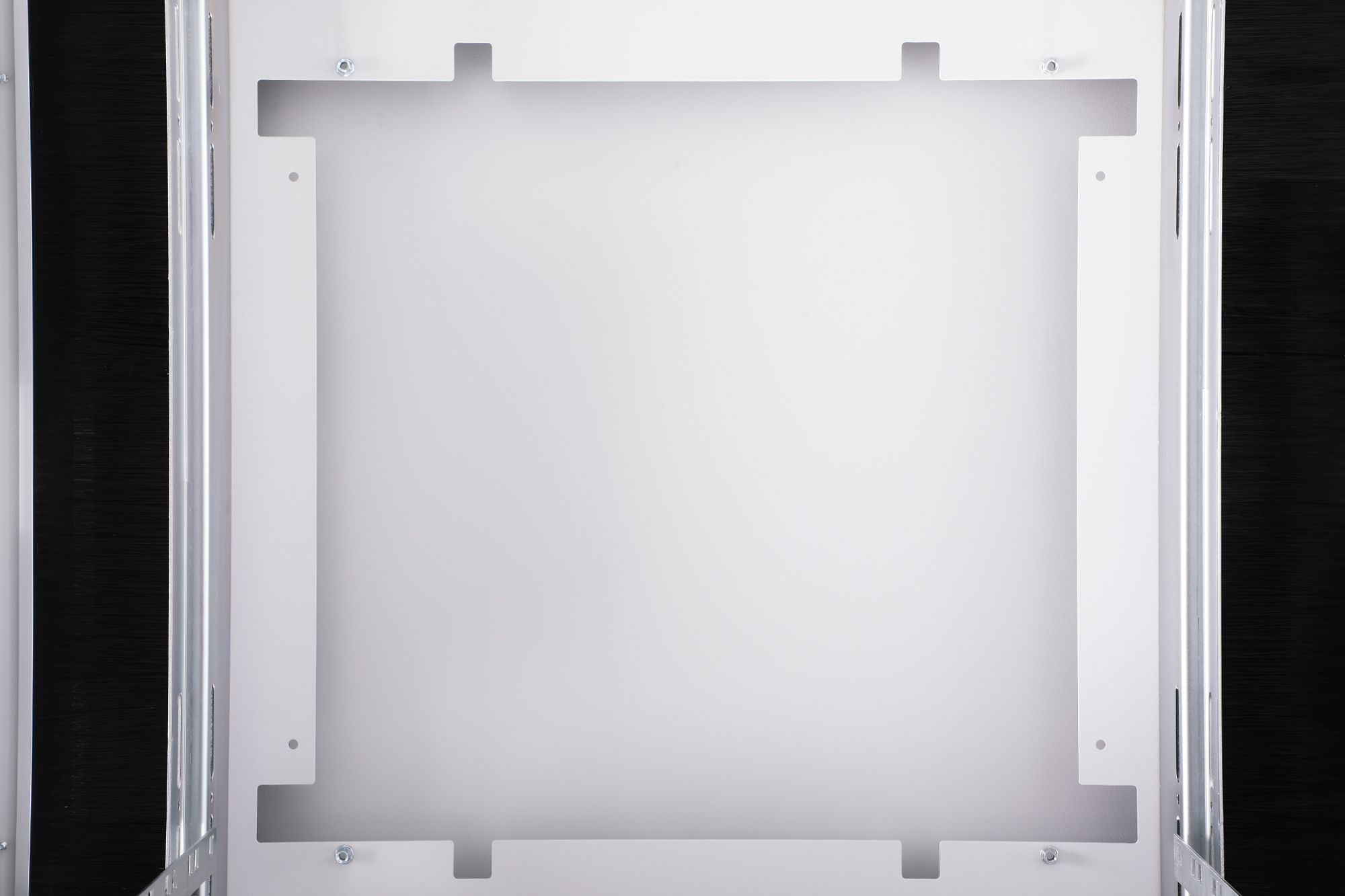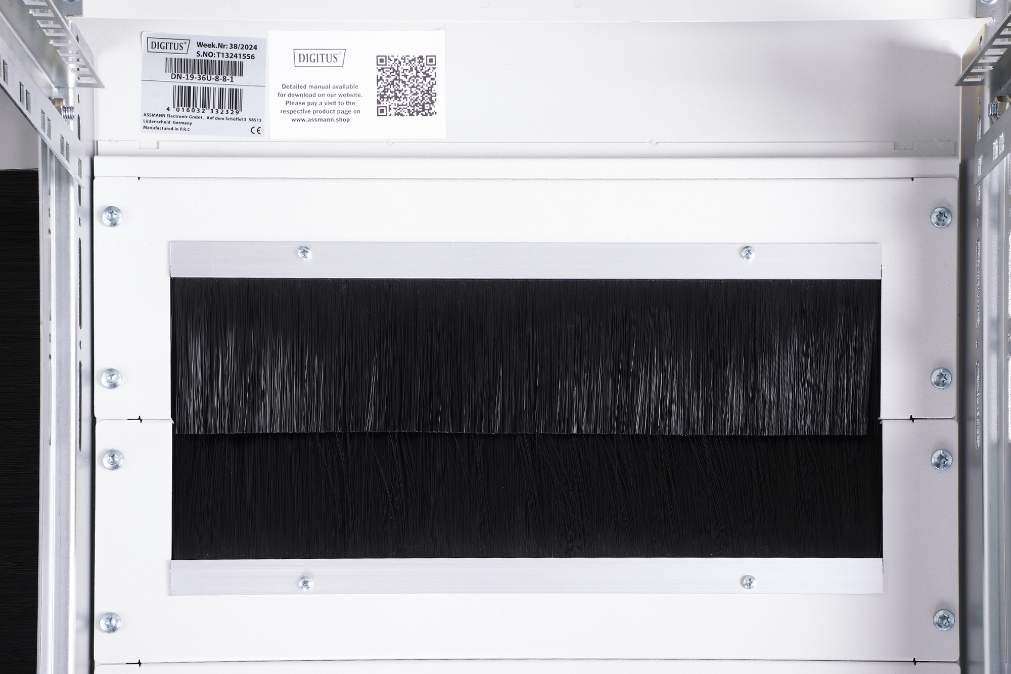 - Flexible Möglichkeiten zur Kabelführung durch großzügige Kabeleinlässe mit Bürsten im Dach, Boden und der Rückseite