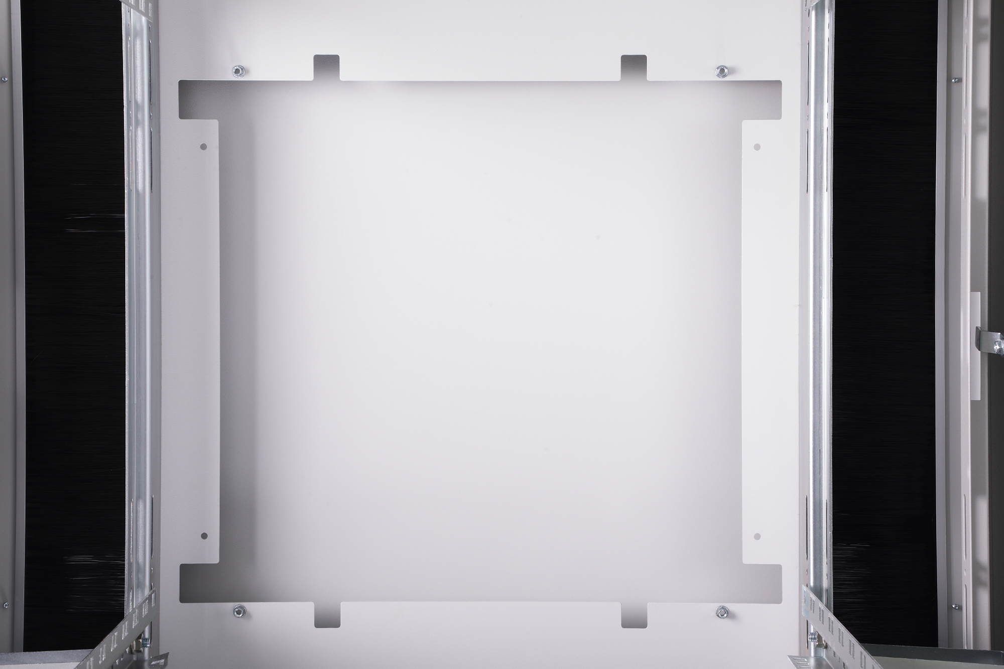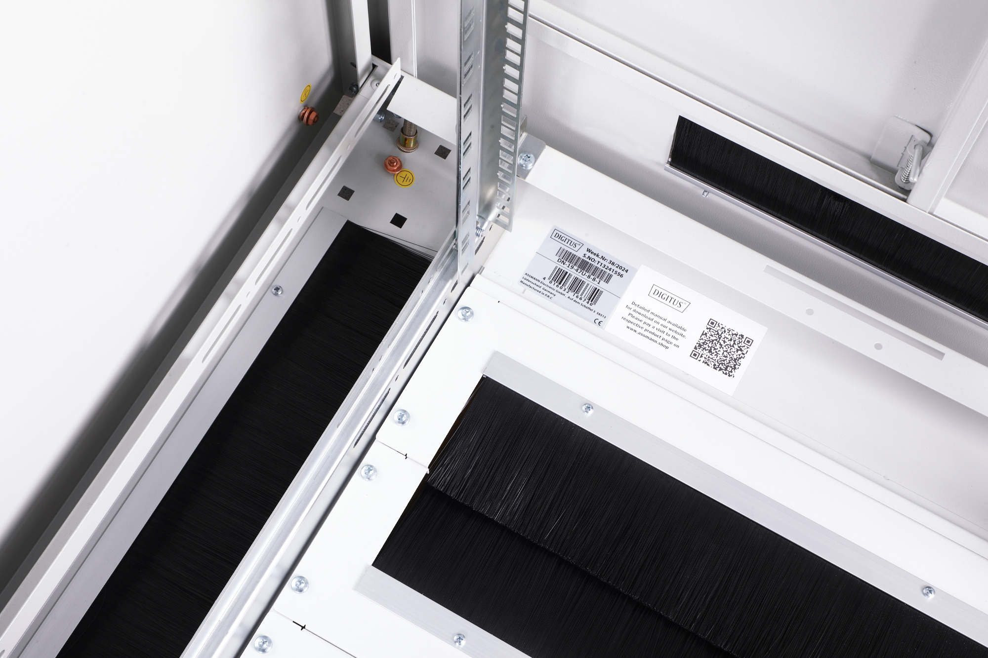 - Flexible Möglichkeiten zur Kabelführung durch großzügige Kabeleinlässe mit Bürsten im Dach, Boden und der Rückseite