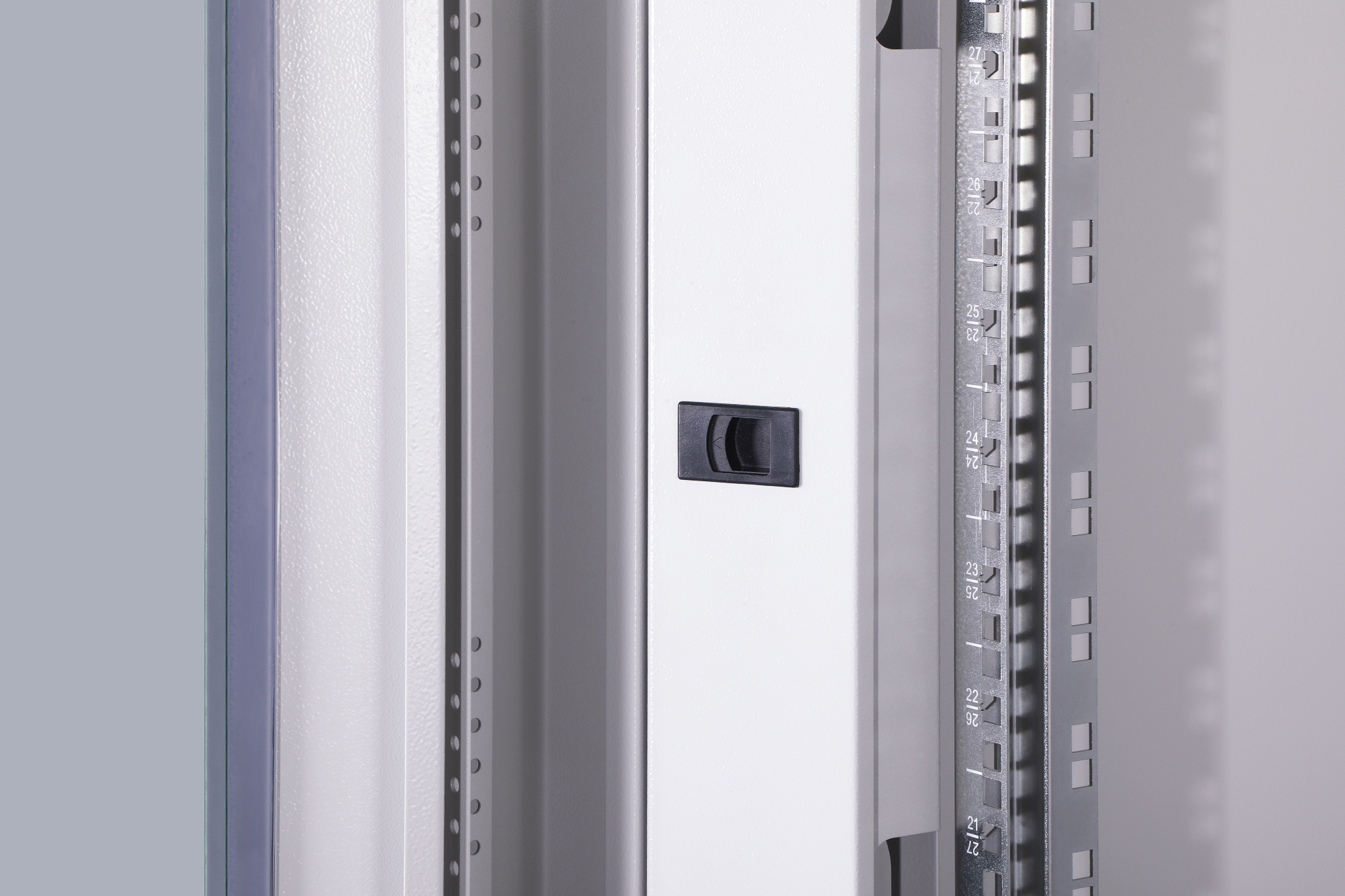 Die Netzwerkschränke der Unique Serie wurden für eine besonders komfortable und flexible Netzwerkverkabelung designt und produziert. Durchdachte Optimierungen bieten marktkonforme Stabilität bei maximaler Flexibilität. Ein modular, durch verschraubte 483 mm (19")-Blindplatten öffenbares Bodenchassis bietet ausreichend Platz für Kabel aller Art. Darüber hinaus befinden sich seitliche Kabeleinlässe mit Bürste jeweils oben und unten im Schrank, sowie ein weiterer im hinteren Bereich des Bodenchassis. Rückseitige Bürstenleisten ober- und unterhalb der Rücktür (ab 26HE), ermöglichen den Einsatz bei verschiedensten Anwendungsszenarien. Großzügige vertikale Kabelkanäle mit Kabelführungshilfen und Blende, verbaut in der Frontseite (ab 800 mm Schrankbreite), runden die vielfältigen Eigenschaften des Netzwerkschranks einwandfrei ab. Zwei Paar verkröpfte und galvanisch verzinkte, mit gegenläufig ablesbaren Höheneinheiten beschriftete 483 mm (19")-Profilschienen sind im Inneren verbaut. Sie lassen sich stufenlos verstellen und sind mit zusätzlichen Tiefenstreben im Schrank verbunden. Jeder Schrank ist eine robuste Stahlkonstruktion aus bis zu 1,5 mm starkem Stahlblech. Die Farbgebung erfolgt in Form von elektrostatischer Pulverbeschichtung in den Standardfarben Grau (RAL 7035) und Schwarz (RAL 9005). Modular abschließ- und abnehmbare Seitenwände sowie Türen verbessern die Zugänglichkeit. Ein Türanschlagswechsel kann vorgenommen werden. Des Weiteren sind die Schränke auf Grund der zerlegbaren Konstruktion bei Bedarf komplett demontierbar. Unter Berücksichtigung von Faktoren wie beispielsweise den Gewichten sowie der Wärmeentwicklung von Einbaukomponenten lassen sich, je nach Anwendungsfall, alle DIGITUS® Unique Netzwerkschränke auch als Serverschränke nutzen. Der Einbau von perforierten Stahlblechtüren sorgt bei solchen Varianten für eine verbesserte passive Kühlung der verbauten Komponenten. Ein von DIGITUS® als Serverschrank definiertes Modell wird beispielsweise in der Standardkonfiguration der Unique Server-N Serie zusätzlich um rückseitige PDU-Halterungen ergänzt.