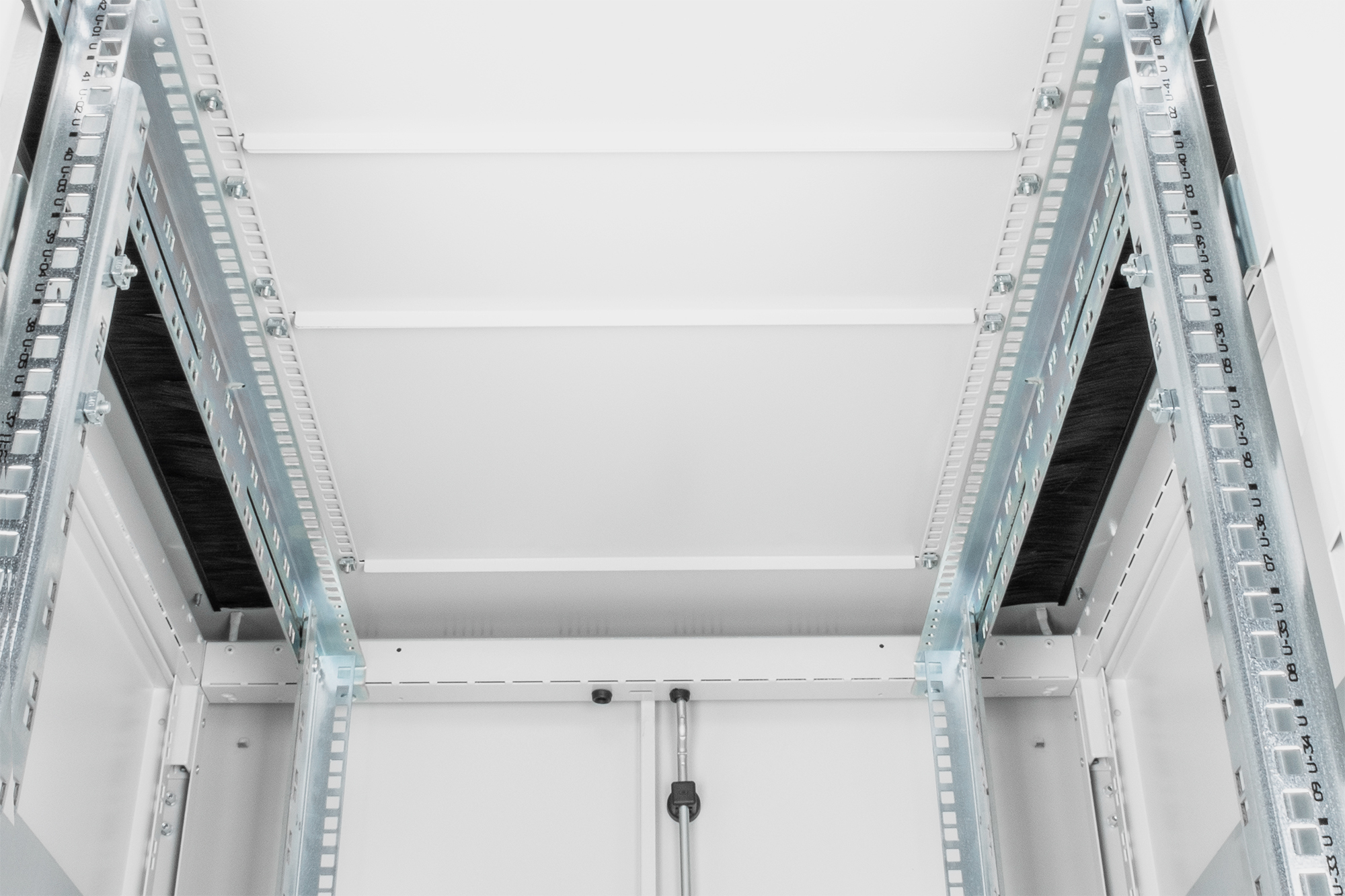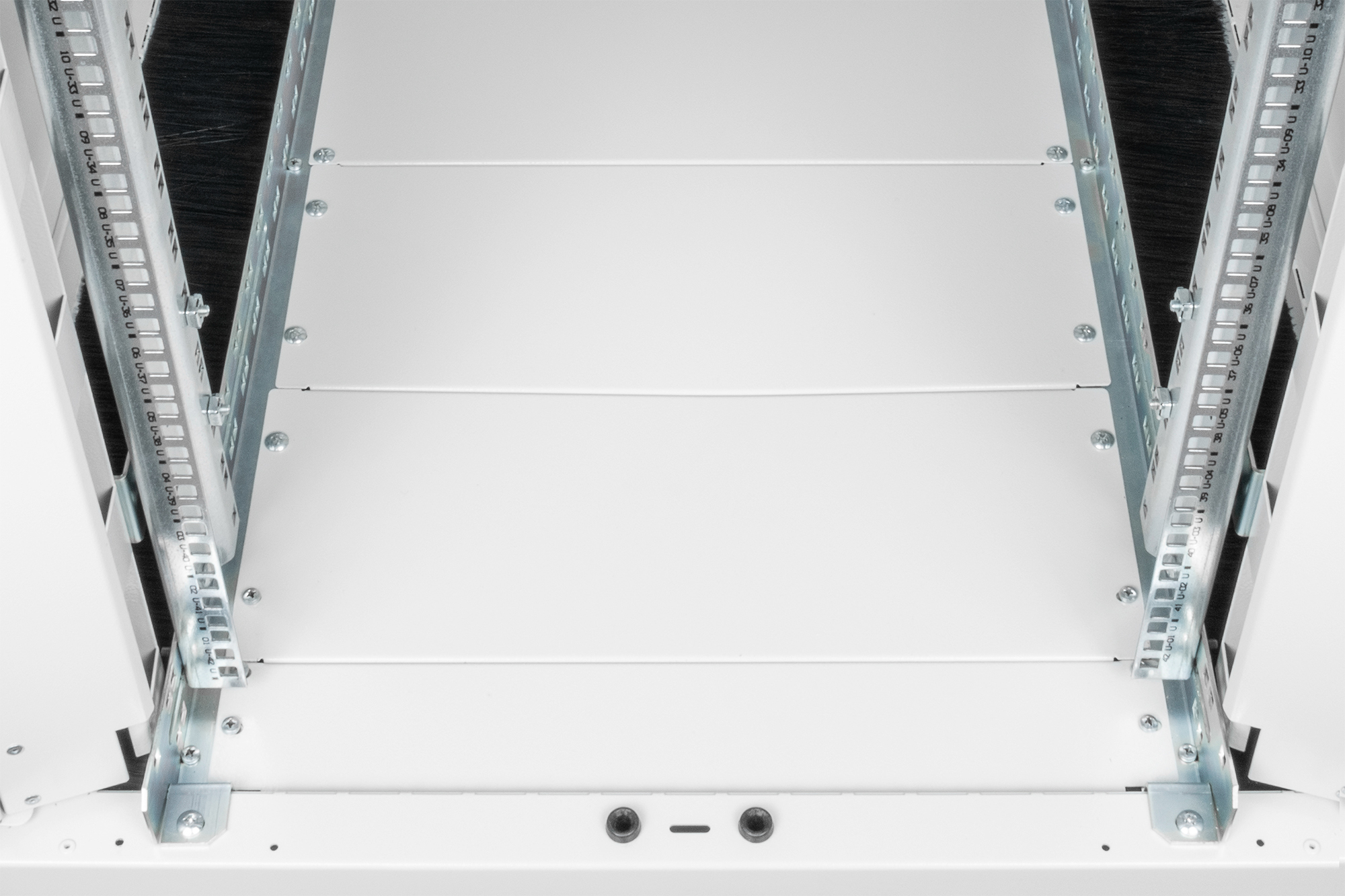 - Sehr modulares Design mit austauschbaren 483 mm (19")-Blindplatten im Dach und Boden