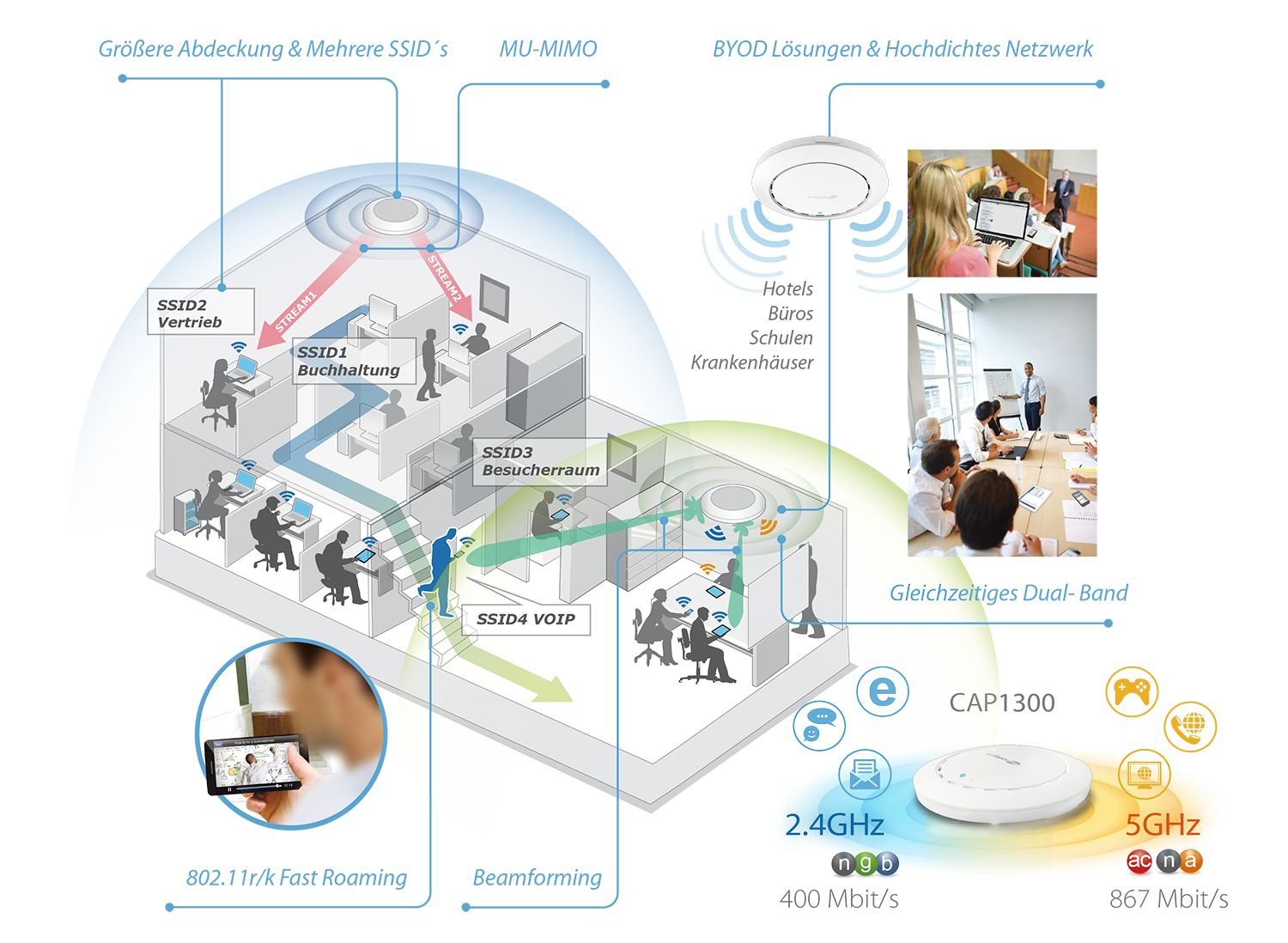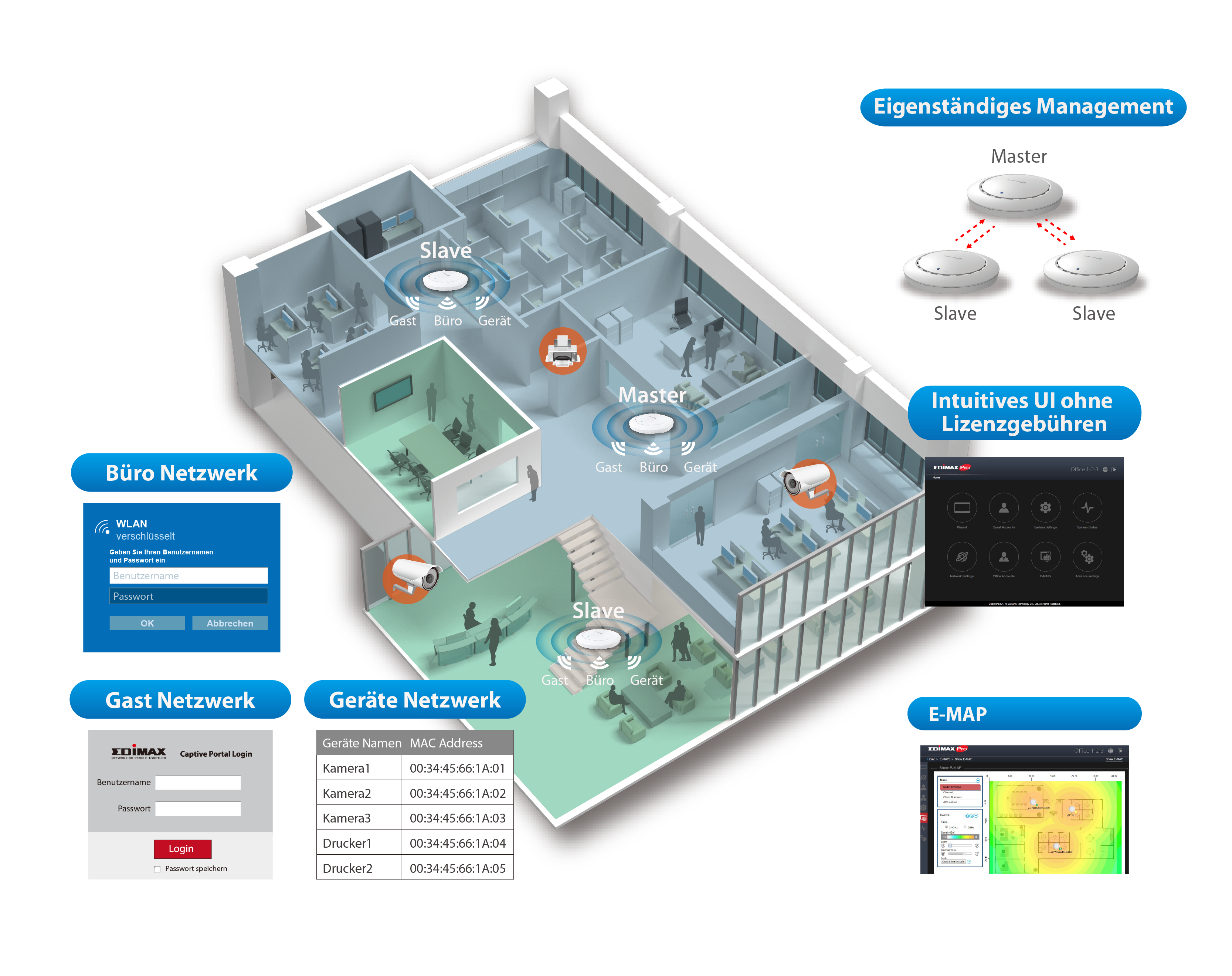 EDIMAX Pro WL-AP Access Point Office 1-2-3 AC1300 POE(3Pack)