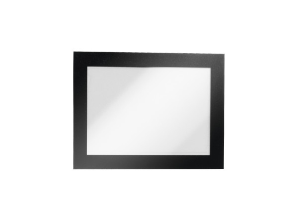 Selbstklebender Informationsrahmen im Format DIN A6 mit aufklappbarer, magnetischer Vorderseite für schnelles und bequemes Wechseln von Informationen.