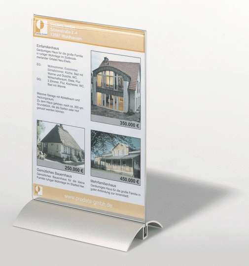 Eleganter Werbeaufsteller für Angebote, Menükarten und Informationen.Tischaufsteller mit Aluminiumstandfuß