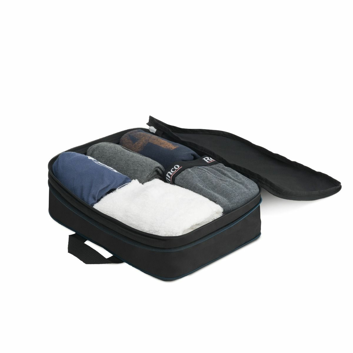 Verwenden Sie die Tasche als zusätzliche Unterteilung in Ihrer Reisetasche. So können Sie Ihre Schuhe, kleine Kleidungsstücke oder ihre Wäsche getrennt aufbewahren. Sie ist federleicht und hat eine kleine Gurtschlaufe zum Aufhängen. Mit dem zusätzlichen Reißverschluss kann sie erweitert oder verkleinert werden.