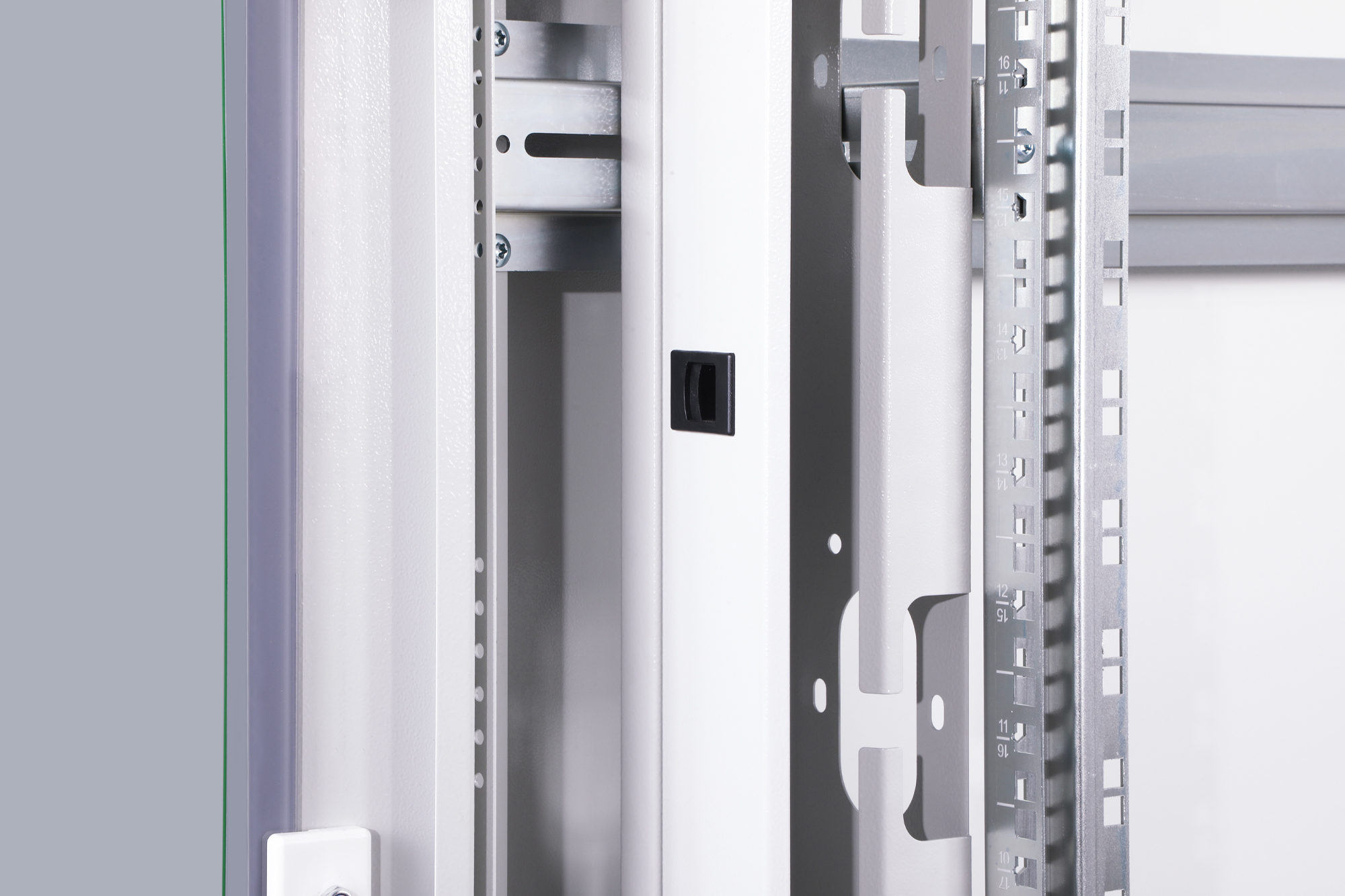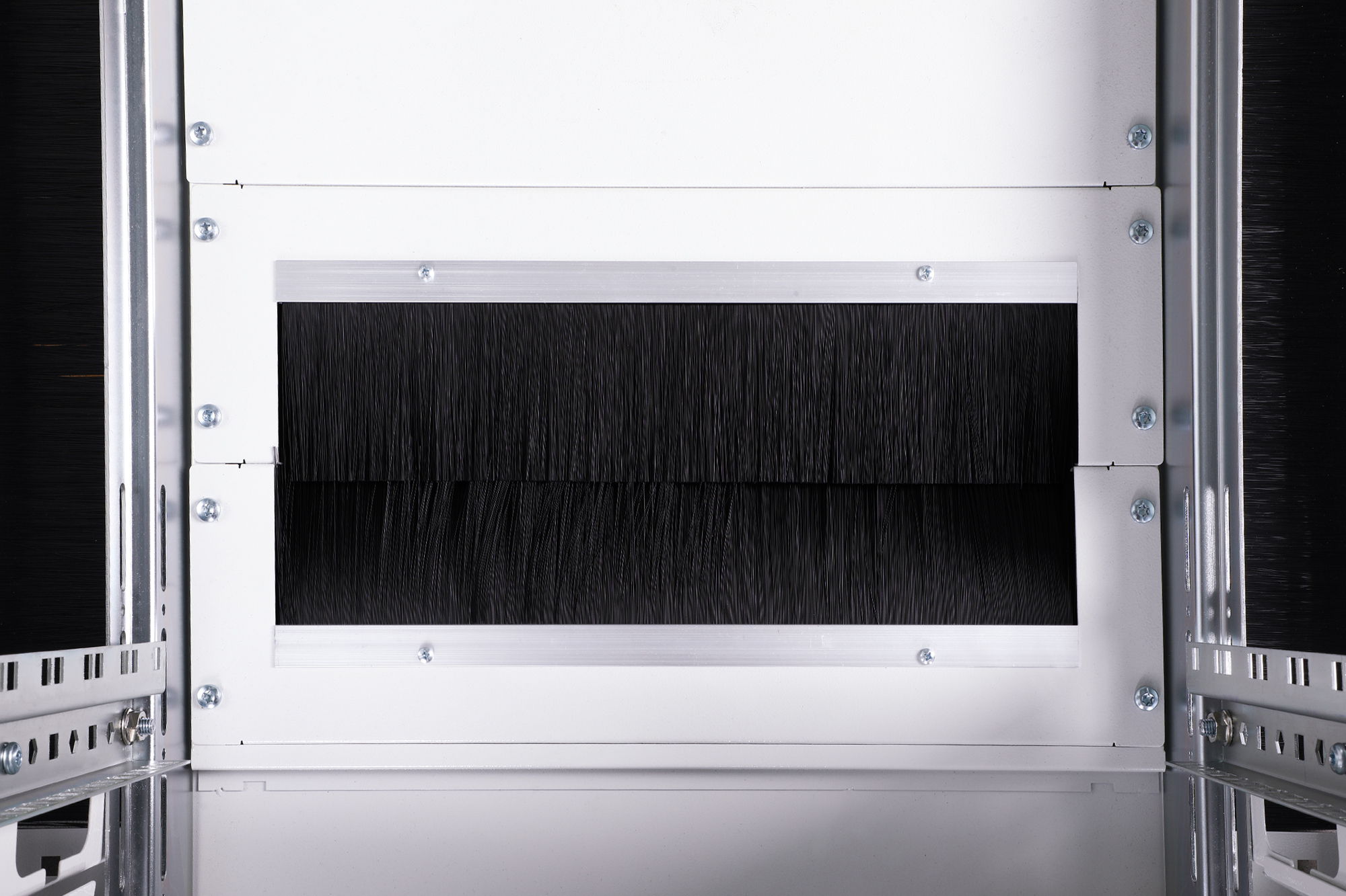 - Flexible Möglichkeiten zur Kabelführung durch großzügige Kabeleinlässe mit Bürsten im Dach, Boden und der Rückseite
