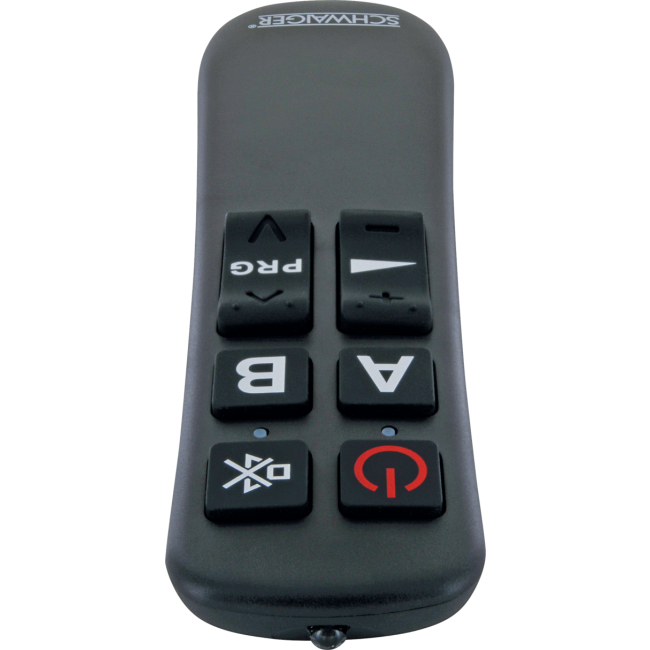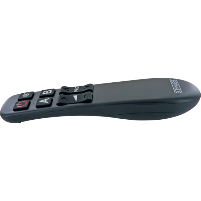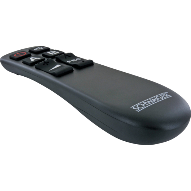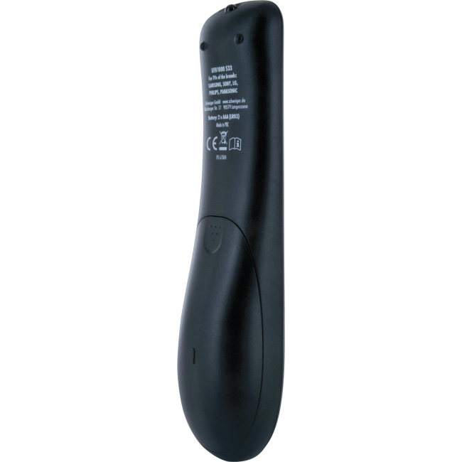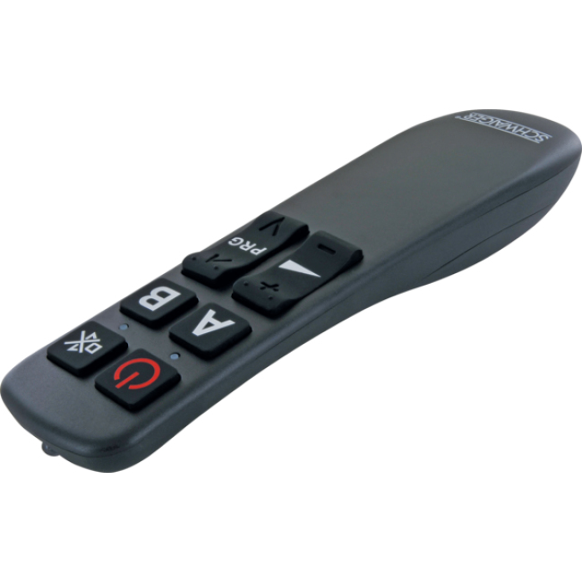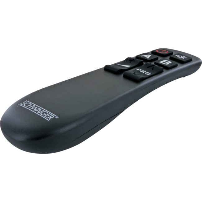 Unsere universale SCHWAIGER® Fernbedienung ist der ideale Ersatz für jede verlorene, verlegte oder defekte Original-Fernbedienung und kann zur Steuerung von zwei unterschiedlichen Geräten verwendet werden. Dank der ergonomischen Bauform liegt die Fernbedienung hervorragend in der Hand und bietet Ihnen so eine äußerst komfortable Handhabung. Darüber hinaus begeistert das Modell durch seine unvergleichlich einfache Bedienbarkeit, da nicht mehr als die 8 essentiell wichtigsten Tasten zum zuverlässigen Steuern Ihrer Geräte benötigt werden.