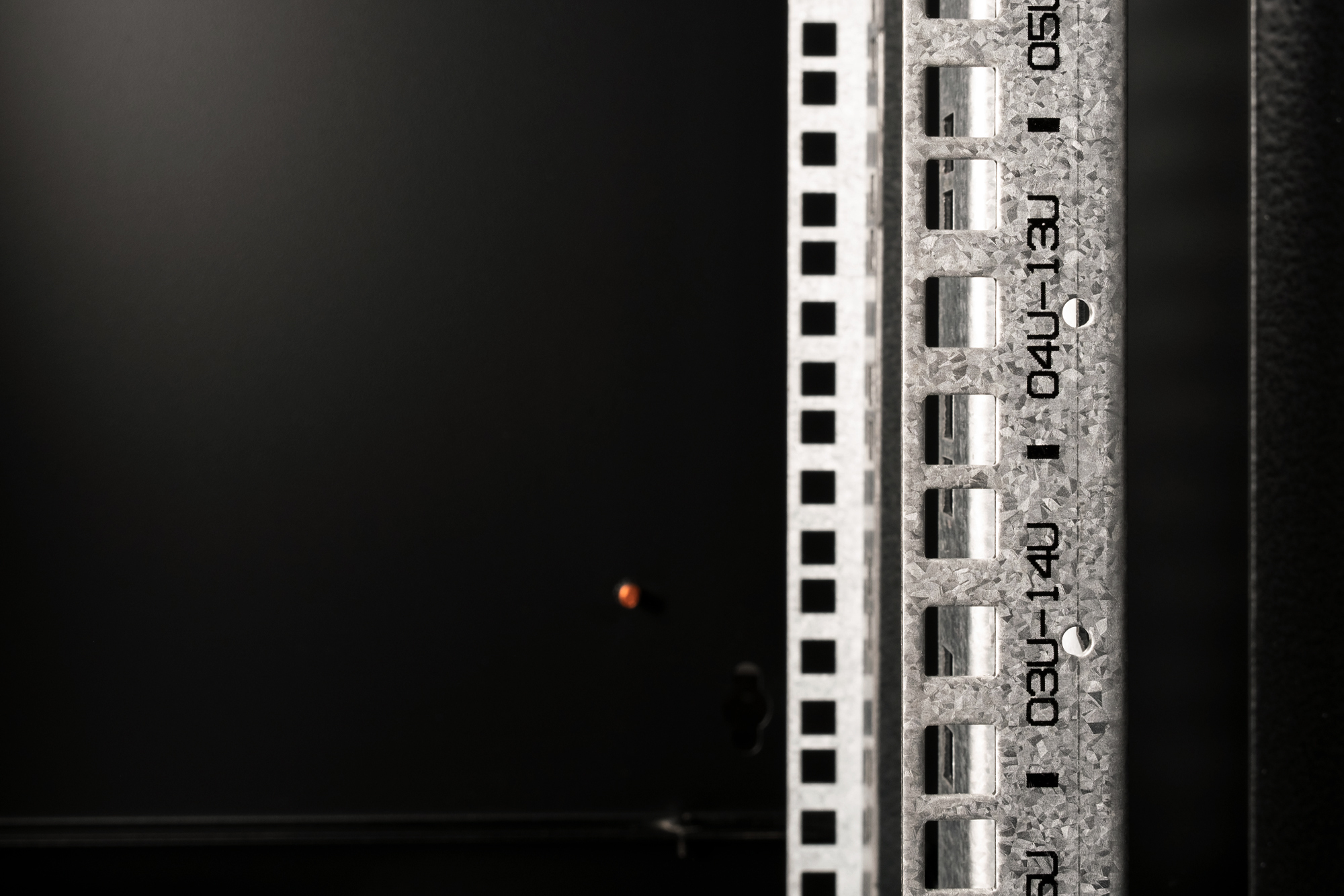 Die Netzwerkschränke zur Wandmontage der Unique Serie wurden für eine besonders komfortable und flexible Netzwerkverkabelung entwickelt. Im Dach eines jeden Schrankes befindet sich ein aufschiebbarer Kabeleinlass mit Moosgummidichtung. Die Rückwand und das Bodenblech sind ausgestattet mit ausgestanzten Kabeleinlässen mit Kunststoffabdeckung. Für die Aufnahme eines Lüftermoduls wird das Dachchassis ebenfalls mit einem ausgestanzten Bereich versehen. Zwei Paar galvanisierte, mit in beide Richtungen ablesbare Höheneinheiten beschriftete 483 mm (19")-Profilschienen sind im Inneren verbaut. Diese lassen sich in der Tiefe verstellen. Jeder Schrank ist eine robuste Stahlkonstruktion aus bis zu 1,5 mm starkem Stahlblech. Die Farbgebung erfolgt in Form von elektrostatischer Pulverbeschichtung in den Standardfarben Grau (RAL 7035) und Schwarz (RAL 9005). Modular abschließ- und abnehmbare Seitenwände sowie die abschließ- und abnehmbare Fronttür, verbessern die Zugänglichkeit. Ein Türanschlagswechsel kann vorgenommen werden. Die Wandmontage erfolgt in zwei einfachen Arbeitsschritten: Die Rückwand des Gehäuses wird an die Wand geschraubt und im Anschluss mit dem Gehäuse verbunden. Mit optional erhältlichen Nivellierfüßen oder Rollen, können die Wandgehäuse der Unique Serie ebenfalls freistehend verwendet werden.