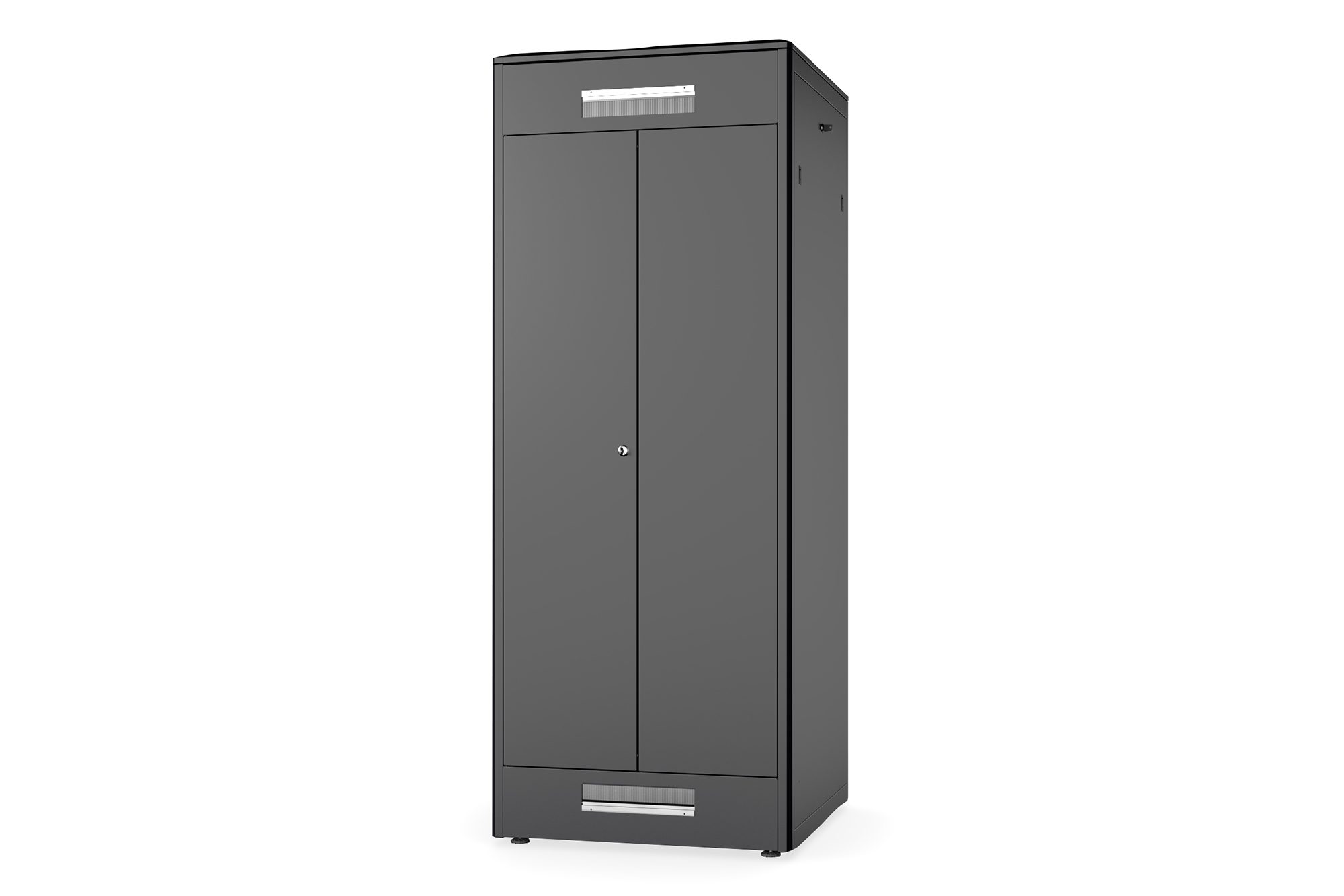 Die Netzwerkschränke der Unique Serie wurden für eine besonders komfortable und flexible Netzwerkverkabelung entwickelt. Mit Bürsten ausgestattete Einlässe im Dach- und Boden (ab 26HE und 800 mm Schrankbreite), ein aufschiebbarer Einlass im Bodenchassis mit Moosgummidichtung sowie rückseitige Bürstenleisten ober- und unterhalb der Rücktür (ab 26HE), ermöglichen einen vielseitigen Einsatz bei verschiedensten Anwendungsszenarien. Vertikale Kabelführungskanäle mit Blende, installiert neben den Profilschienen (ab 800 mm Schrankbreite), runden das Design ab. Ein abgesetzter, abnehmbarer Deckel mit Lüftungsschlitzen sorgt für eine verbesserte Luftzirkulation. Dieser sitzt über einer speziellen Konstruktion für die einfache Aufnahme eines Lüftermoduls. Zwei Paar galvanisierte, mit in beide Richtungen ablesbare Höheneinheiten beschriftete 483 mm (19")-Profilschienen sind im Inneren verbaut. Sie lassen sich in der Tiefe verstellen und sind mit zusätzlichen Tiefenstreben im Schrank verbunden. Jeder Schrank ist eine robuste Stahlkonstruktion aus bis zu 1,5 mm starkem Stahlblech. Die Farbgebung erfolgt in Form von elektrostatischer Pulverbeschichtung in den Standardfarben Grau (RAL 7035) und Schwarz (RAL 9005). Modular abschließ- und abnehmbare Seitenwände sowie Türen verbessern die Zugänglichkeit. Ein Türanschlagswechsel kann vorgenommen werden. Des Weiteren sind die Schränke auf Grund der zerlegbaren Konstruktion bei Bedarf komplett demontierbar.