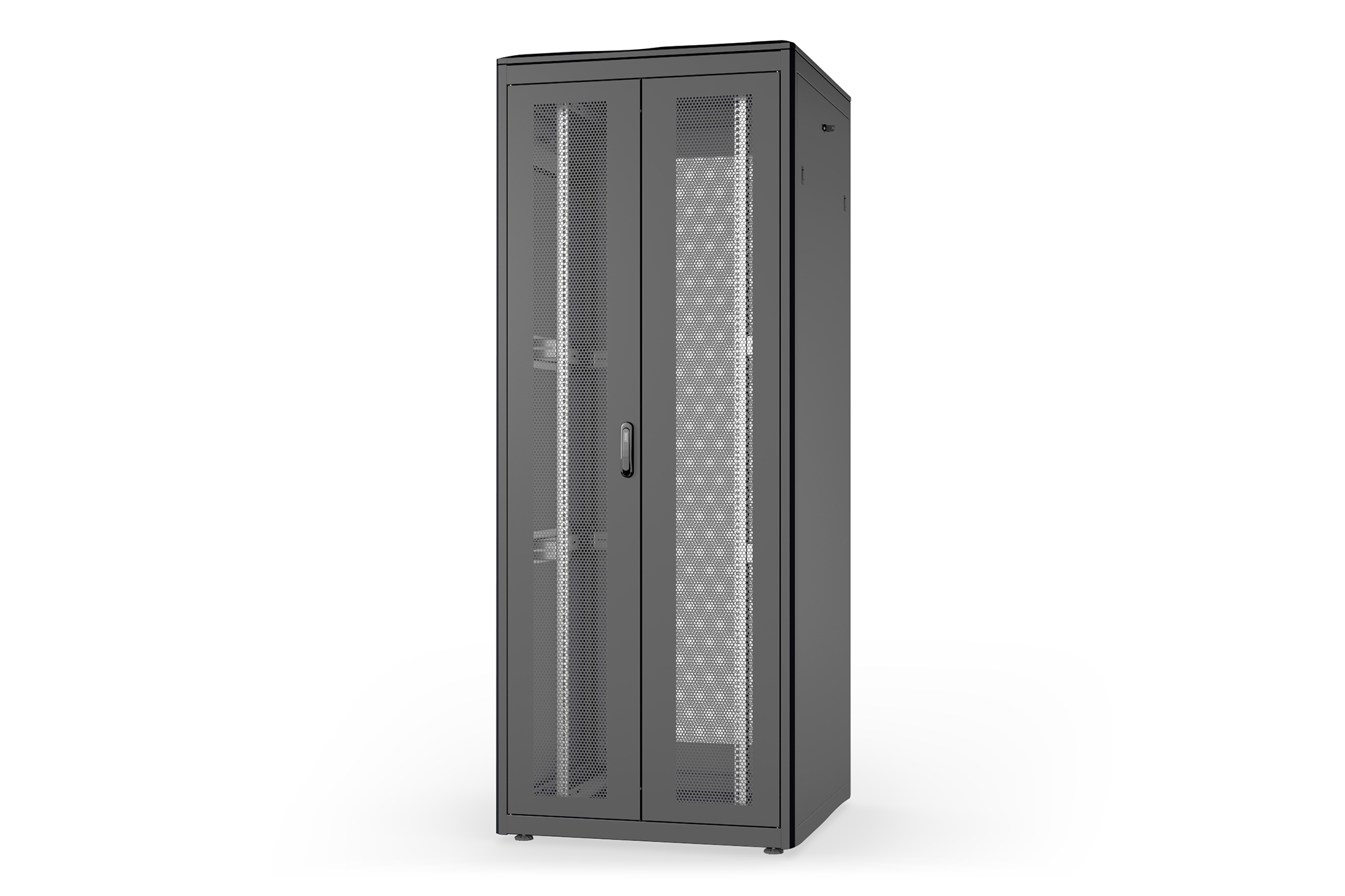 - Stahl-Front- und Rücktür mit 70% Perforation für verbesserte Luftzirkulation & Abwärme