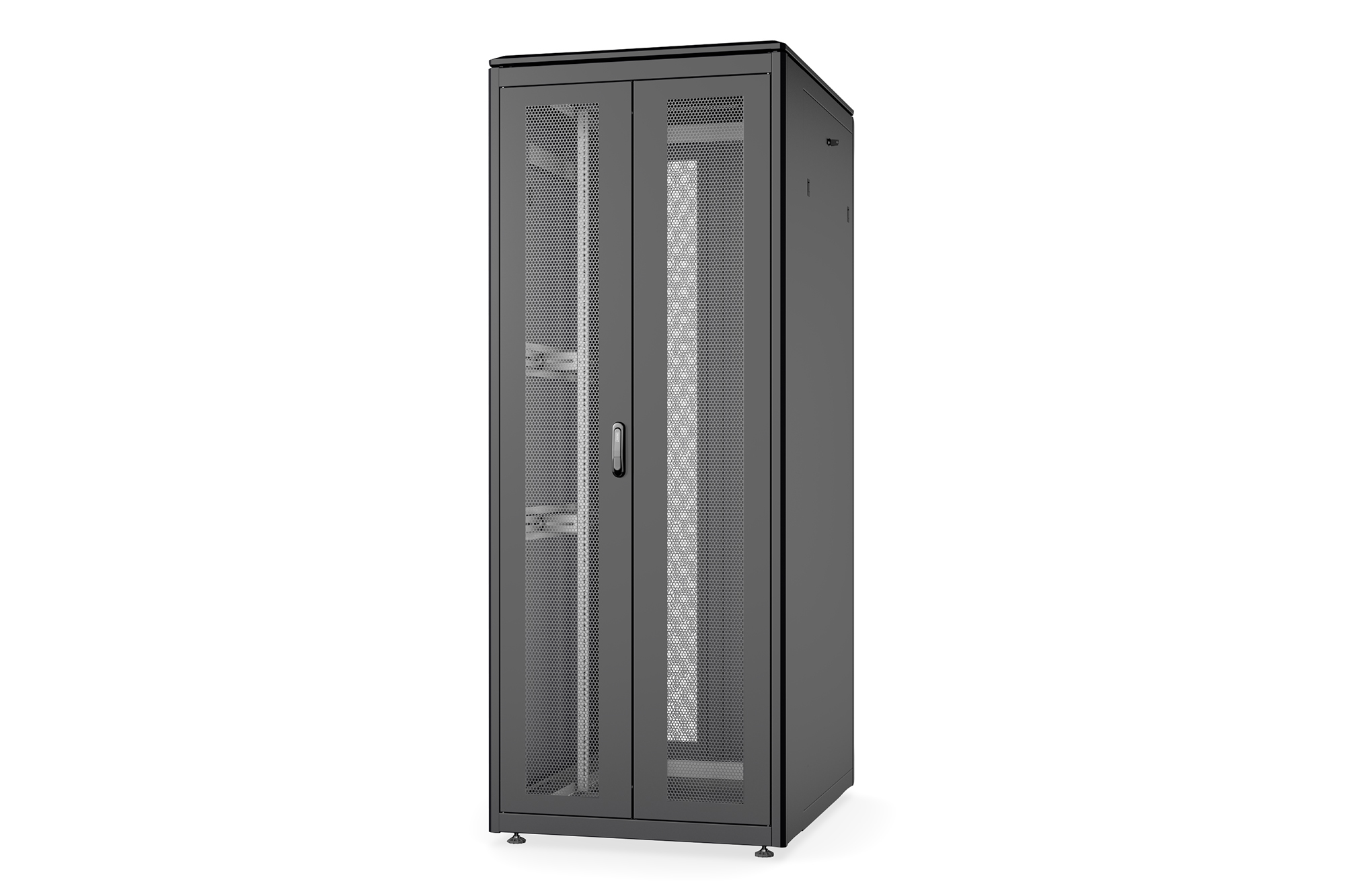 - Stahl-Front- und Rücktür mit 70% Perforation für verbesserte Luftzirkulation & Abwärme