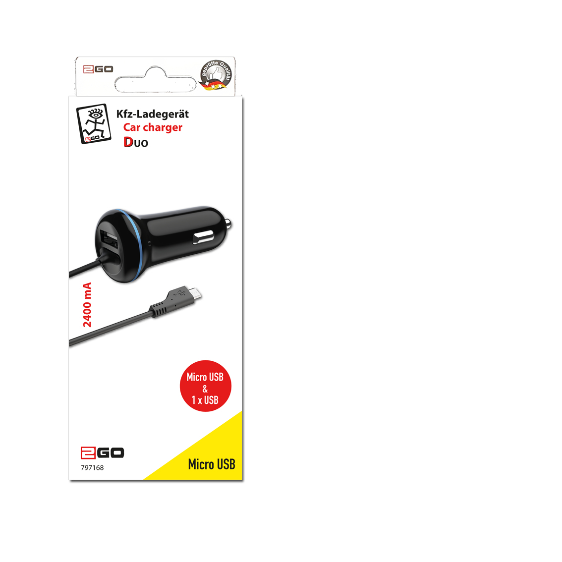 2GO USB-Kfz-Ladegerät 2400mA Micro USB  120cm   schwarz