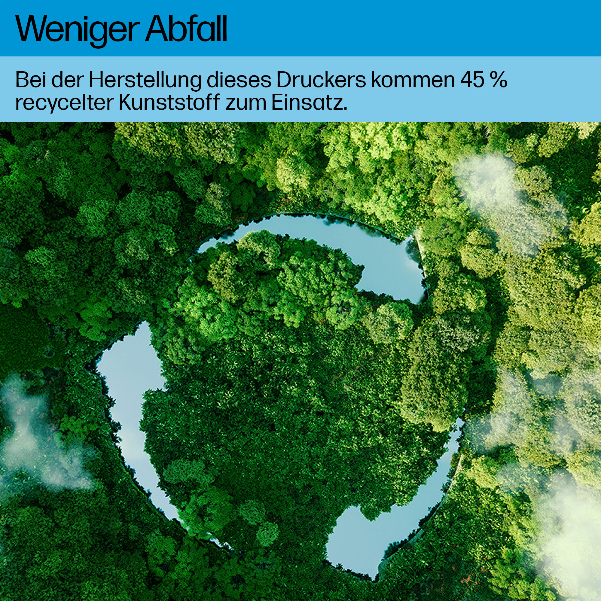 Nachhaltige Technologien und Materialien: 45 % recycelter Haushaltskunststoff; Recycelbar über HP Planet Partners; Nachhaltig drucken dank unserem Aufforstungsprogramm mit HP+