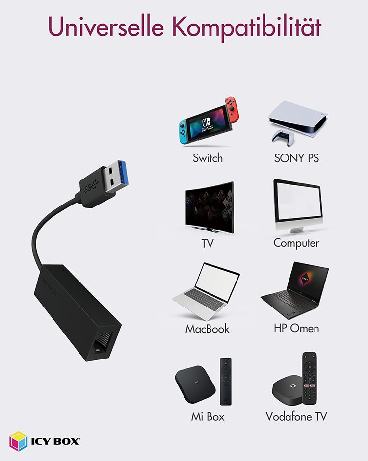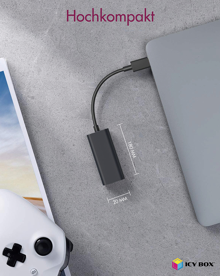 Adapter IcyBox USB 3.2 Gen1 zu Gigabit Ethernet retail