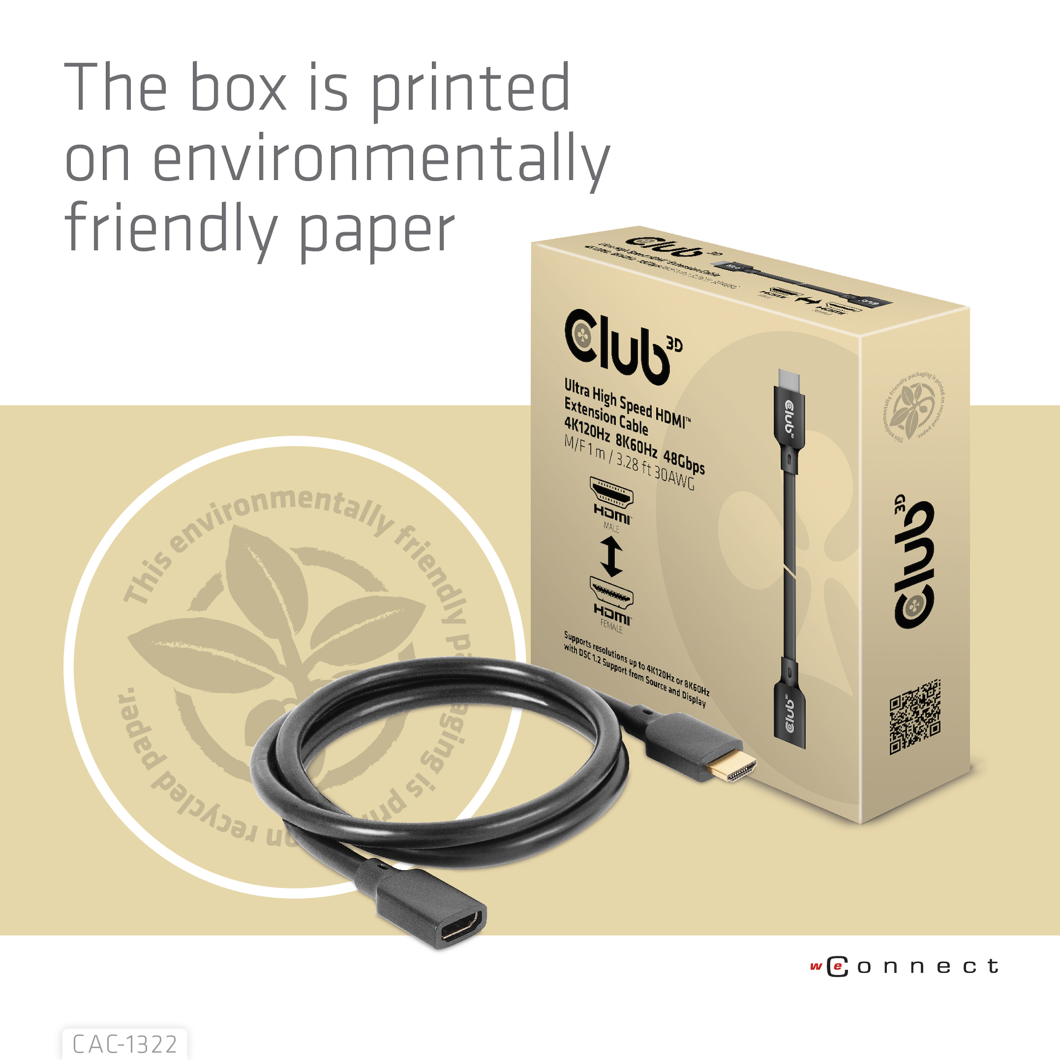 Club3D HDMI-Kabel 2.1 UHD-Verlängerungskabel 1 Meter St/Bu retai