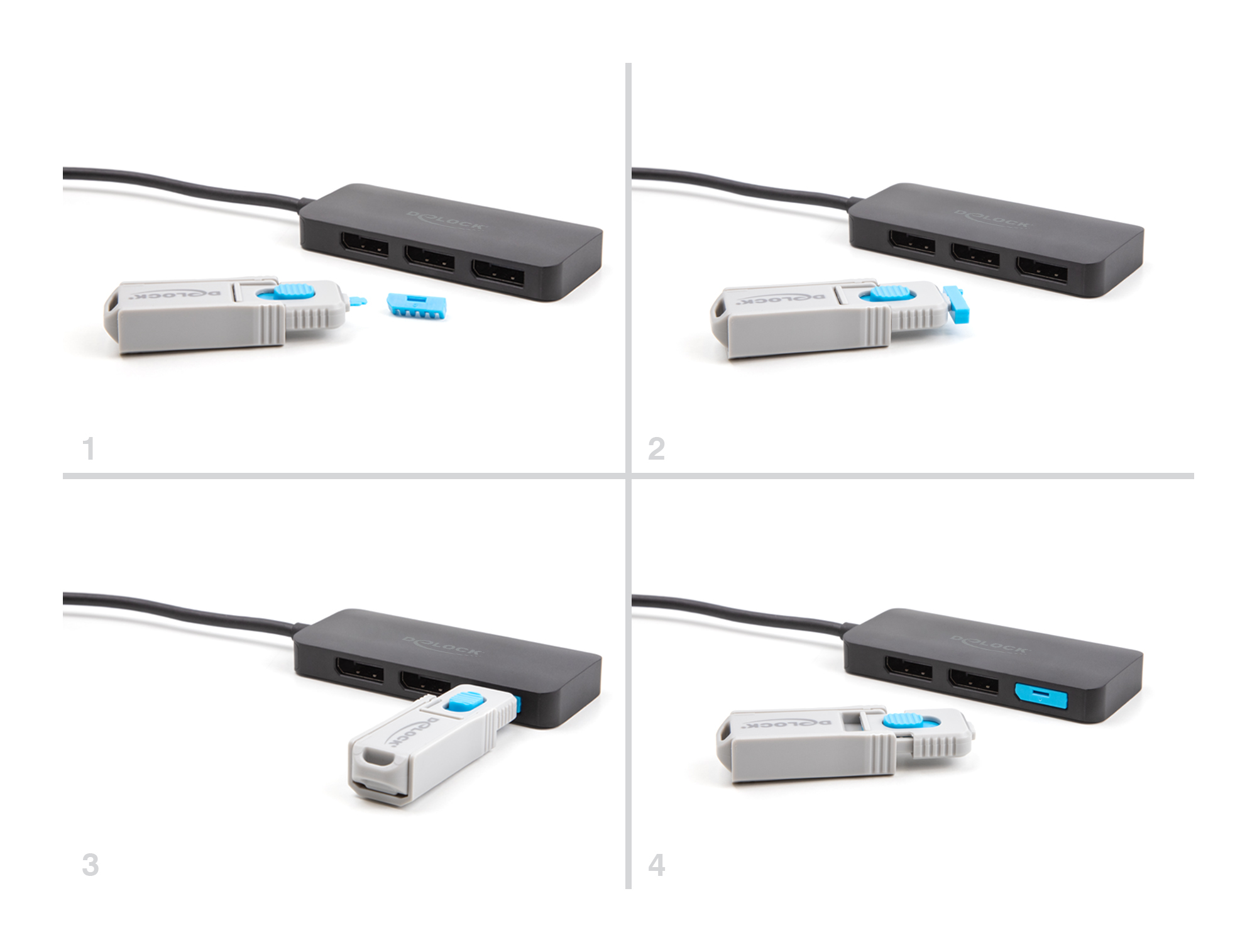 Dieses Portblocker Set von Delock ist Zubehör für 20923. Insgesamt können mit dem Set 10 DisplayPort Ports geblockt werden. Zugriff durch Kabel auf die Buchse sind dann nicht mehr möglich.