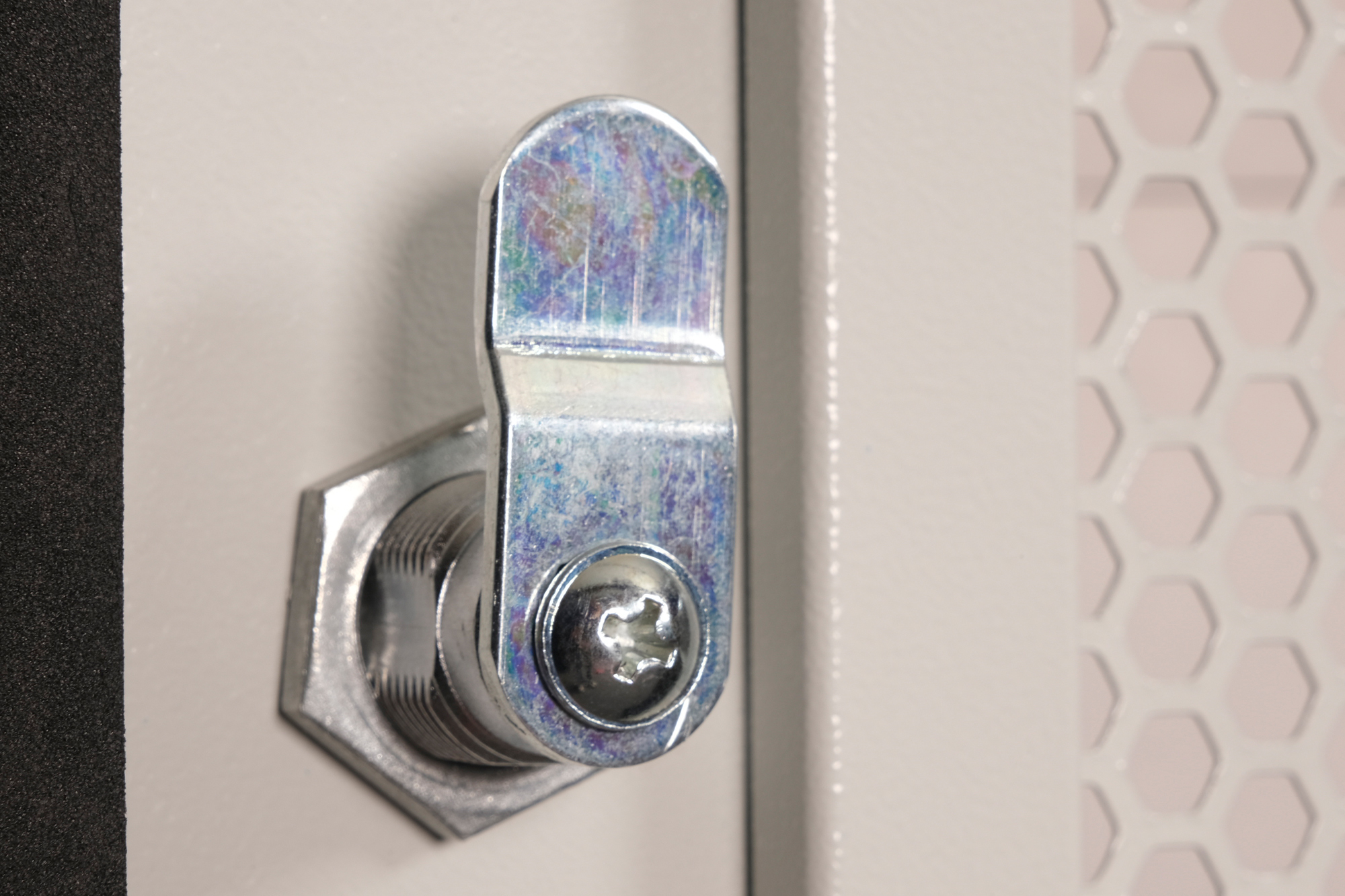 - Abschließbare Stahl-Fronttür mit Perforation, 200° Türöffnungswinkel