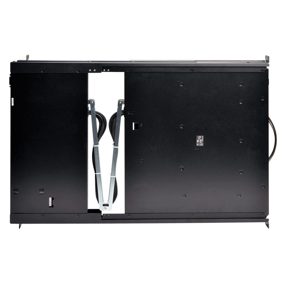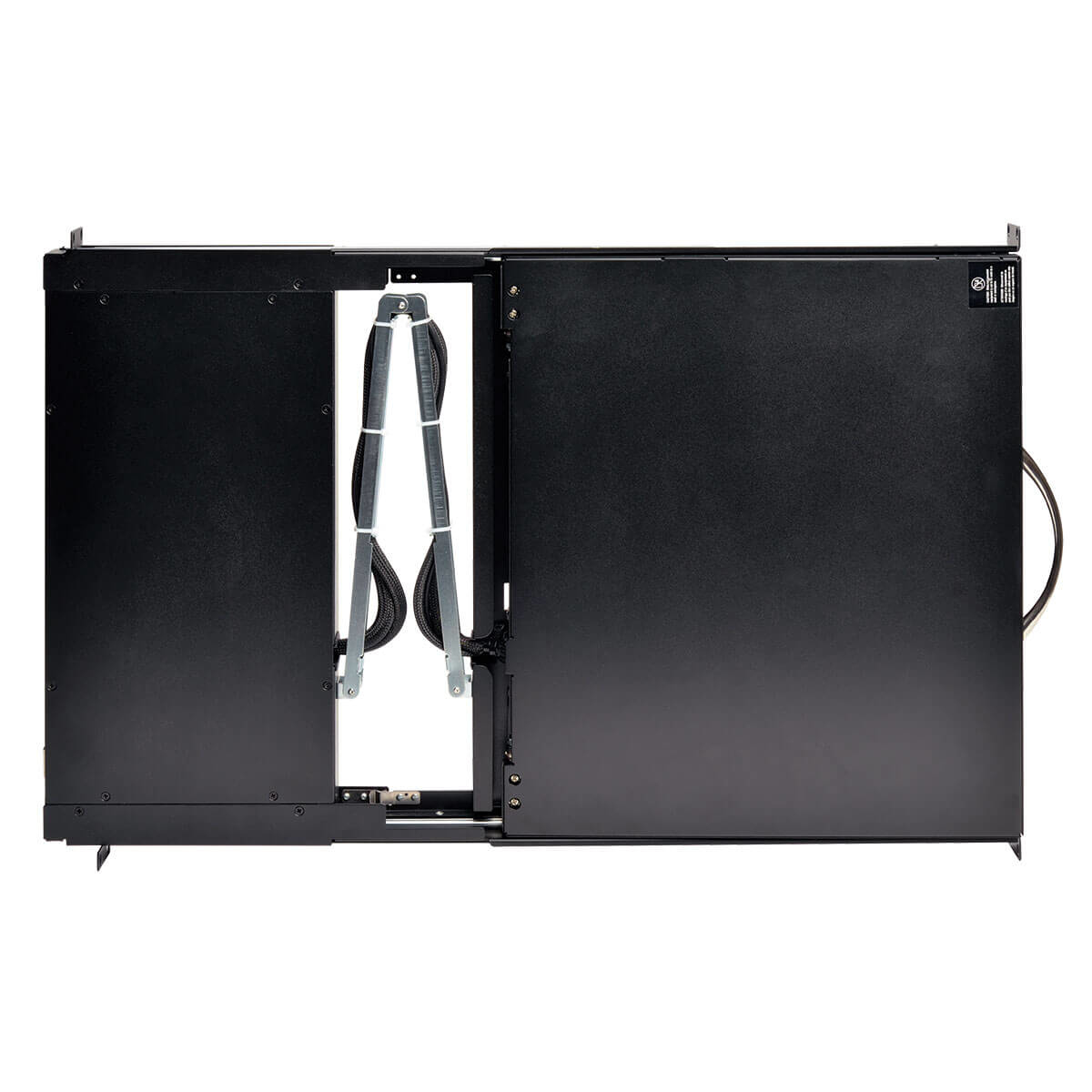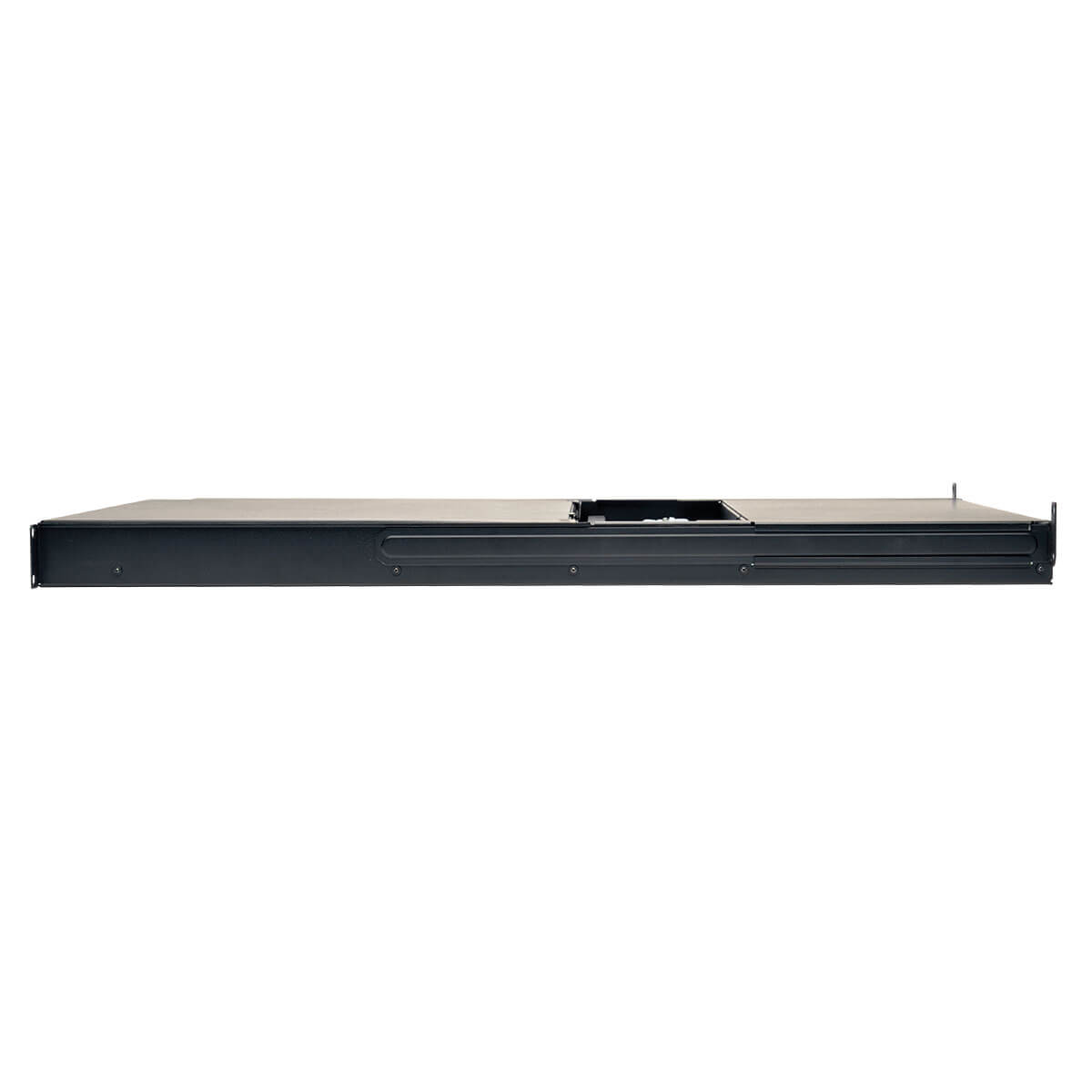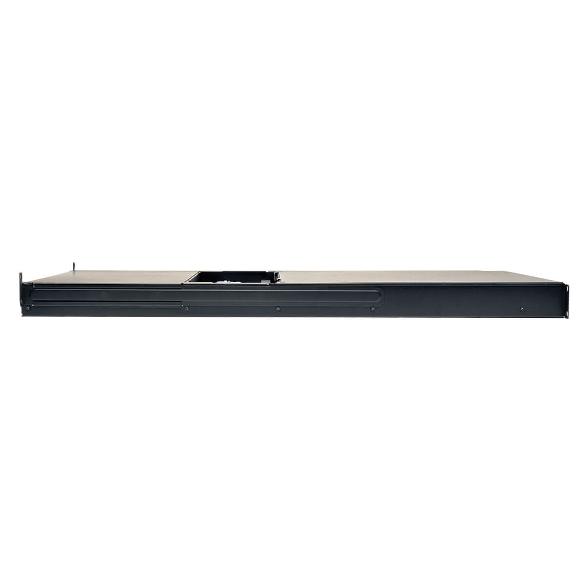 Die B021-000-19-HD2 wird mit den im Lieferumfang enthaltenen Montagehalterungen und vom Benutzer bereitgestellten Schrauben in einem 19-Zoll-Rack nach EIA-Standard in einem 1-HE-Platz montiert. Ziehen Sie einfach die Stahlschublade heraus, klappen Sie den Bildschirm bei Bedarf hoch und schieben Sie ihn, wenn Sie fertig sind, im automatischen Ruhemodus wieder in das Rack. Dadurch wird verhindert, dass die Tastatur und der Bildschirm den Zugriff auf Rack-Geräte blockieren, wenn die Konsole nicht verwendet wird.