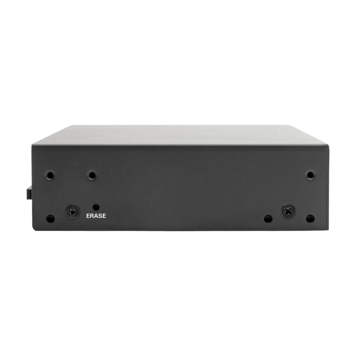 Das hochbelastbare Stahlgehäuse wird mit Montagewinkeln zur einfachen Installation in einem 19-Zoll-Serverschrank nach EIA-Standard geliefert. Sein lüfterloser Formfaktor ermöglicht auch die Aufstellung auf vier mitgelieferten Gummifüßen, die ein Verrutschen des Geräts verhindern.