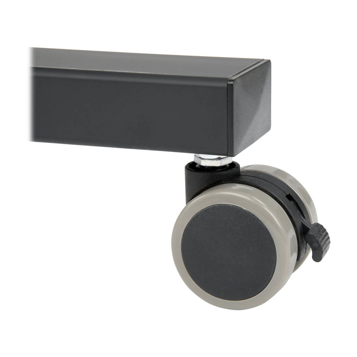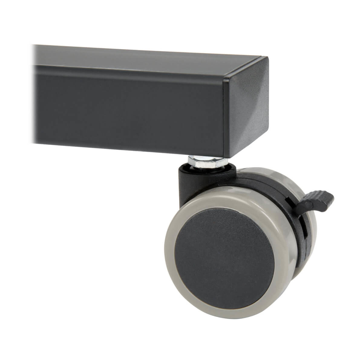 Diese Workstation mit Monitorhalterung verfügt über vier Lenkrollen, so dass Sie sie überall dorthin rollen können, wo Ihre Arbeit Sie hinführt. Die Platzierung des Monitors und der Tastaturablage sind verstellbar, sodass Sie das DMCS1732S als Stehpult oder als Sitzarbeitsplatz zu Hause, in der Schule oder im Büro verwenden können. Aufgrund ihrer kleinen Stellfläche passt die Workstation in Räume, die für einen herkömmlichen Schreibtisch zu klein sind. Wenn die Workstation nicht in Gebrauch ist, kann sie zur Aufbewahrung in einen sicheren Bereich gerollt werden. Zwei der Rollen sind arretierbar, um unerwünschte Bewegungen zu verhindern.