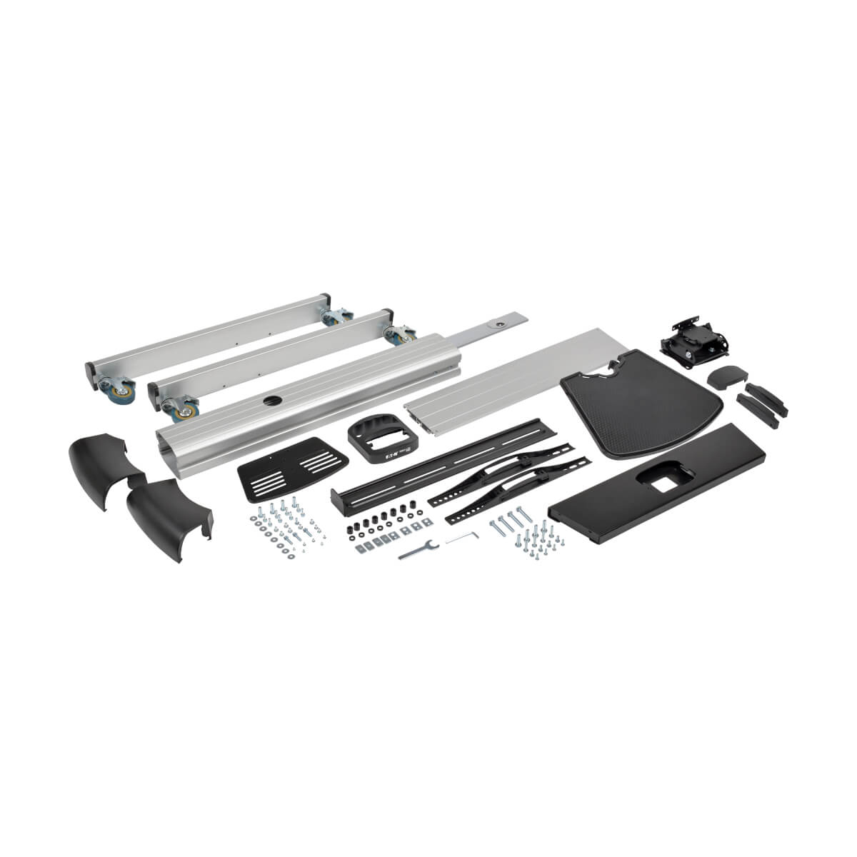 Das über dem Bildschirm angebrachte Regal kann für Beamer, Webcams und Laptops verwendet werden. Das untere Regal trägt bis zu 5 kg und ist für andere Audio-/Videokomponenten geeignet, wie z. B. einen Blu-ray-Player. Die langlebige Aluminium- und Stahlkonstruktion trägt bis zu 70 kg. Die Adapterhalterungen können an VESA-konforme Bildschirme mit einem der folgenden Montagelochmuster angepasst werden: 200 x 200, 200 x 300, 200 x 400, 300 x 200, 300 x 300, 300 x 400, 400 x 200, 400 x 300, 400 x 300, 400 x 400, 500 x 200, 500 x 300, 500 x 400, 600 x 300 und 600 x 400