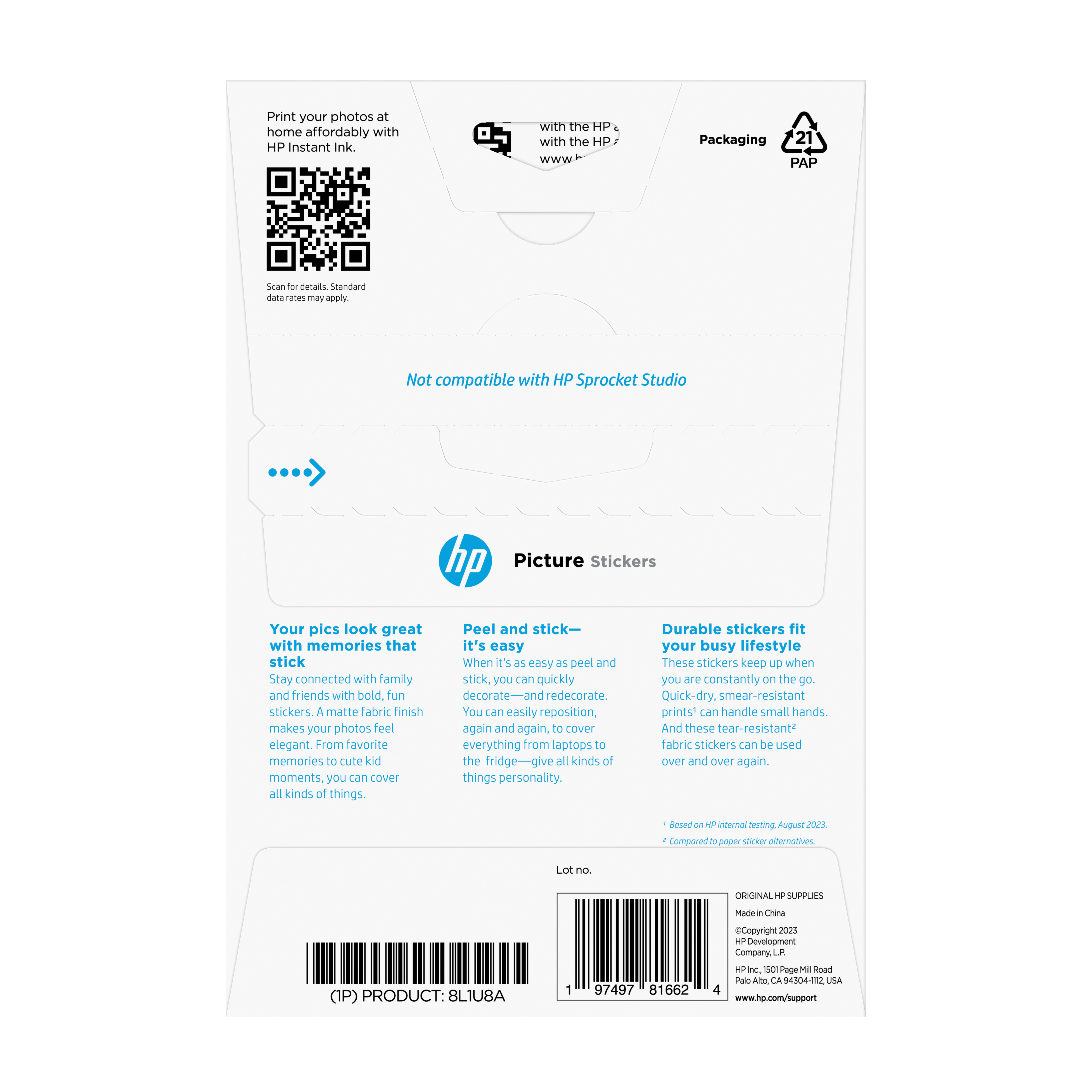 Ideal für junge Kreative Mütter, Väter und Großeltern, die gerne Fotoerinnerungen und Momente kreieren, verbinden und teilen möchten, indem sie Tintenstrahl-Sticker drucken.Drucken Sie Ihre Lieblingsfotos auf Aufkleber und teilen Sie sie mit Freunden und Familie. Ihre Fotos sehen mit dem matten Stofffinish elegant aus. Sie können diese schnell trocknenden, wischfesten[1] und reißfesten[2] Aufkleber immer wieder neu positionieren.