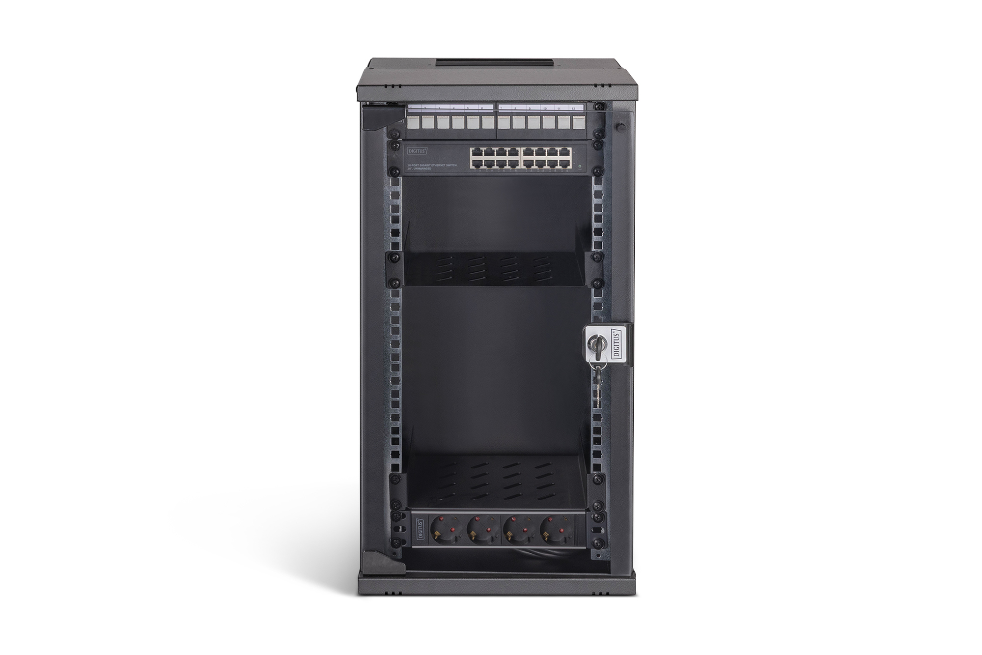 - Inklusive Wandgehäuse SOHO PRO, 12HE, 595 x 315 x 300 mm, unmontiert (DN-49105)