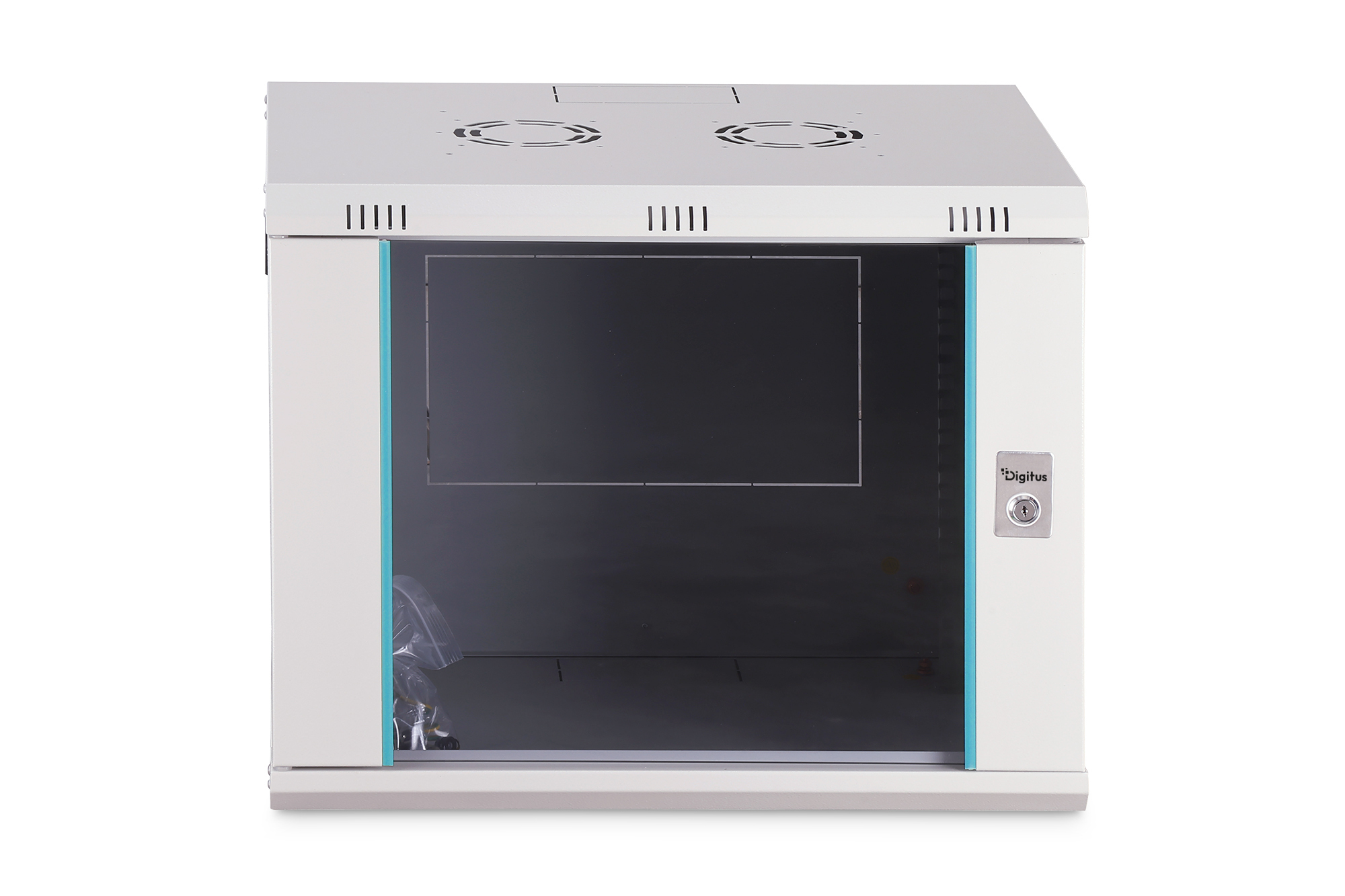 Die Netzwerkschränke zur Wandmontage der Dynamic-N Serie wurden für einen einfachen und besonders kostenoptimierten Netzwerkausbau entwickelt. Dach, Boden und Rückwand eines jeden Schrankes sind mit einem vorgestanzten Kabeleinlass ausgestattet. Für die Aufnahme eines Lüftermoduls wird das Dachchassis ebenfalls mit einem ausgestanzten Bereich versehen. Zwei Paar galvanisierte, mit in beide Richtungen ablesbare Höheneinheiten beschriftete 483 mm (19")-Profilschienen sind im Inneren verbaut. Diese lassen sich in der Tiefe verstellen. Jeder Schrank ist eine robuste Stahlkonstruktion aus bis zu 1,2 mm starkem Stahlblech. Die Farbgebung erfolgt in Form von elektrostatischer Pulverbeschichtung in den Standardfarben Grau (RAL 7035) und Schwarz (RAL 9005). Abnehmbare Seitenwände sowie die abschließ- und abnehmbare Fronttür, verbessern die Zugänglichkeit. Ein Türanschlagswechsel kann vorgenommen werden. Die Wandmontage erfolgt in zwei einfachen Arbeitsschritten: Das mitgelieferte Montageblech wird an die Wand geschraubt und im Anschluss mit dem Gehäuse verbunden. Für eine vereinfachte Logistik wird die Dynamic-N Serie unmontiert im platzsparenden Flatpack geliefert. Die Montage des Wandgehäuses kann schnell und unkompliziert anhand der beiliegenden Montageanleitung durchgeführt werden.