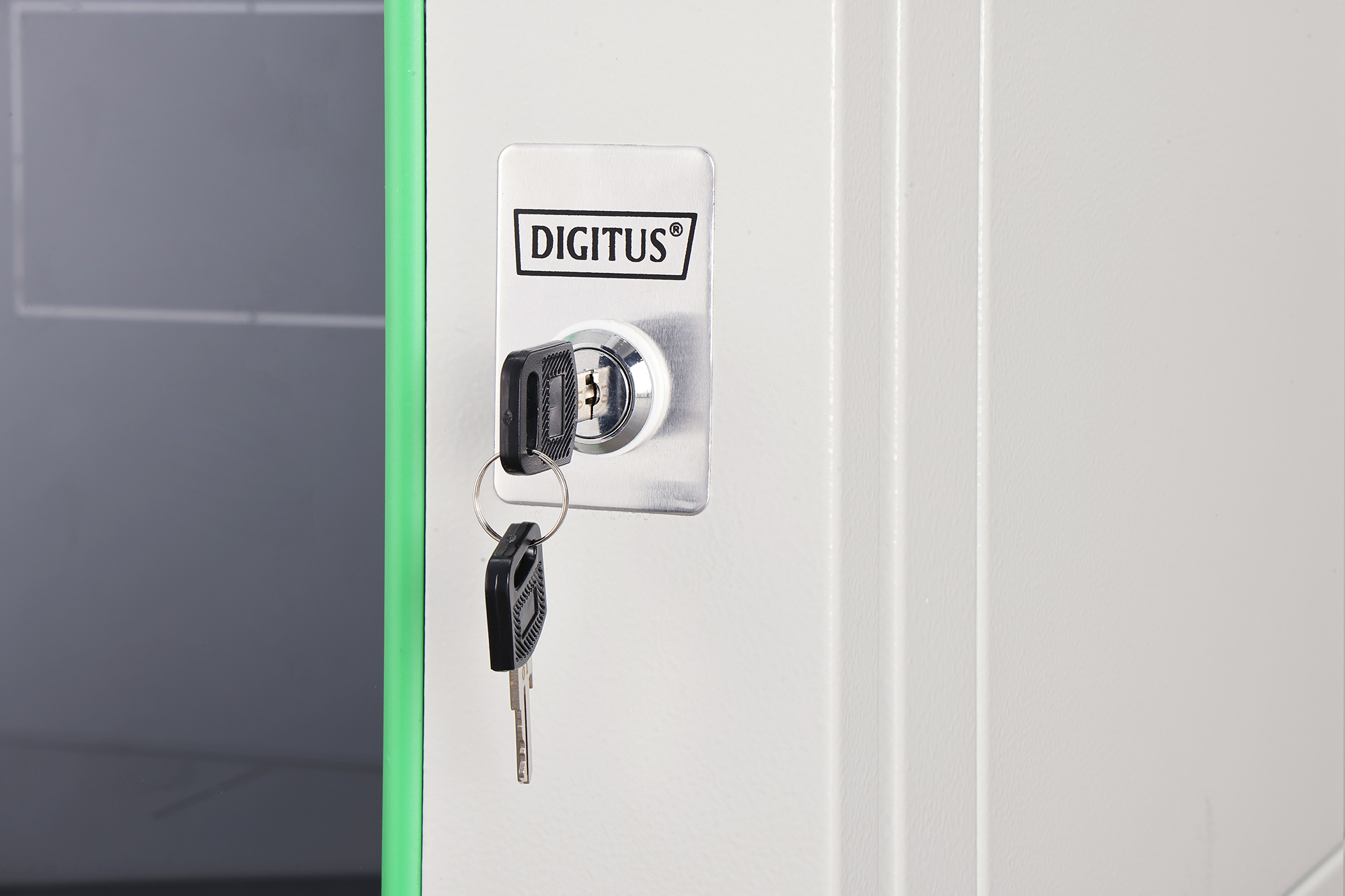 - Abschließbare Sicherheitsglastür mit Stahlrahmen