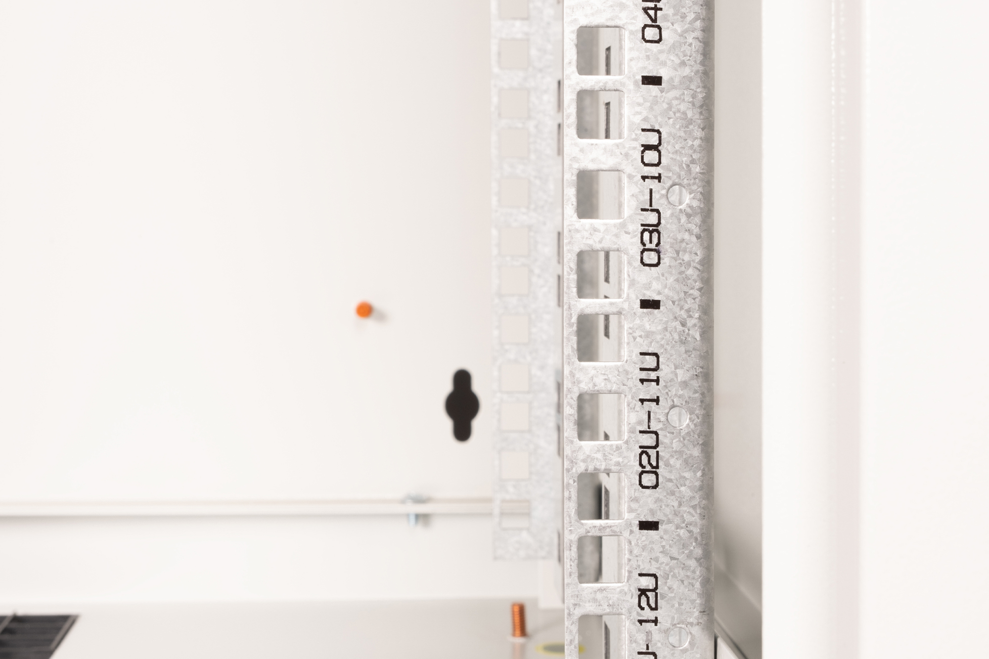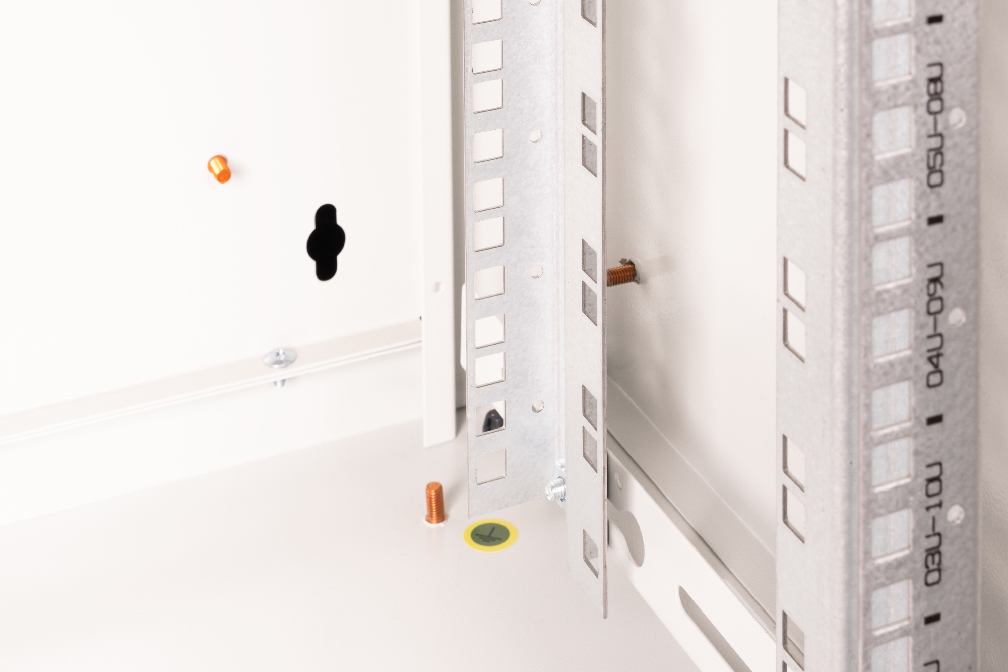 Die Netzwerkschränke zur Wandmontage der Unique Serie wurden für eine besonders komfortable und flexible Netzwerkverkabelung entwickelt. Im Dach eines jeden Schrankes befindet sich ein aufschiebbarer Kabeleinlass mit Moosgummidichtung. Die Rückwand und das Bodenblech sind ausgestattet mit ausgestanzten Kabeleinlässen mit Kunststoffabdeckung. Für die Aufnahme eines Lüftermoduls wird das Dachchassis ebenfalls mit einem ausgestanzten Bereich versehen. Zwei Paar galvanisierte, mit in beide Richtungen ablesbare Höheneinheiten beschriftete 483 mm (19")-Profilschienen sind im Inneren verbaut. Diese lassen sich in der Tiefe verstellen. Jeder Schrank ist eine robuste Stahlkonstruktion aus bis zu 1,5 mm starkem Stahlblech. Die Farbgebung erfolgt in Form von elektrostatischer Pulverbeschichtung in den Standardfarben Grau (RAL 7035) und Schwarz (RAL 9005). Modular abschließ- und abnehmbare Seitenwände sowie die abschließ- und abnehmbare Fronttür, verbessern die Zugänglichkeit. Ein Türanschlagswechsel kann vorgenommen werden. Die Wandmontage erfolgt in zwei einfachen Arbeitsschritten: Die Rückwand des Gehäuses wird an die Wand geschraubt und im Anschluss mit dem Gehäuse verbunden. Mit optional erhältlichen Nivellierfüßen oder Rollen, können die Wandgehäuse der Unique Serie ebenfalls freistehend verwendet werden.