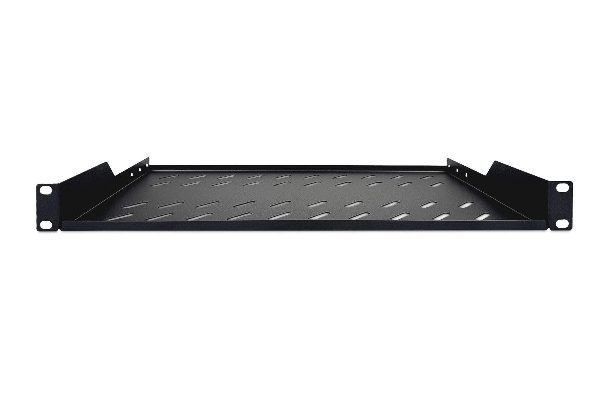 Die Fachböden zum Festeinbau lassen sich einfach an den vorderen 483 mm (19)-Profilschienen Ihres 483 mm (19) Netzwerk- oder Serverschrankes installieren. Durch das stabile, perforierte Lochblech mit einer hohen Traglast, sind sie die optimale Tragfläche für nicht 483 mm (19) einbaufähige Komponenten.
